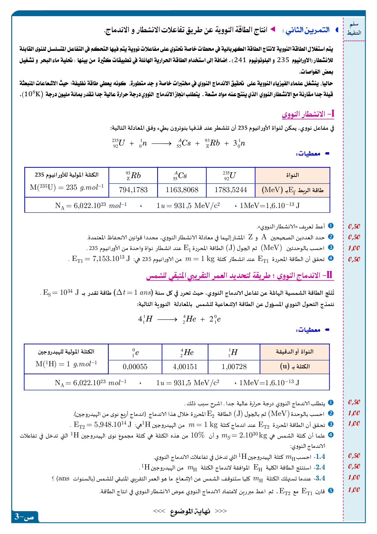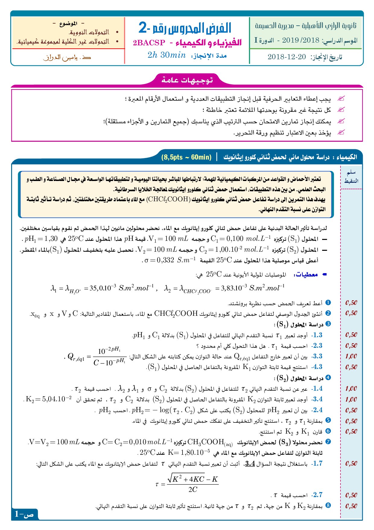 الفرض 2 نموذج 8 - الفيزياء والكيمياء ثانية باك علوم فيزيائية الدورة الأولى