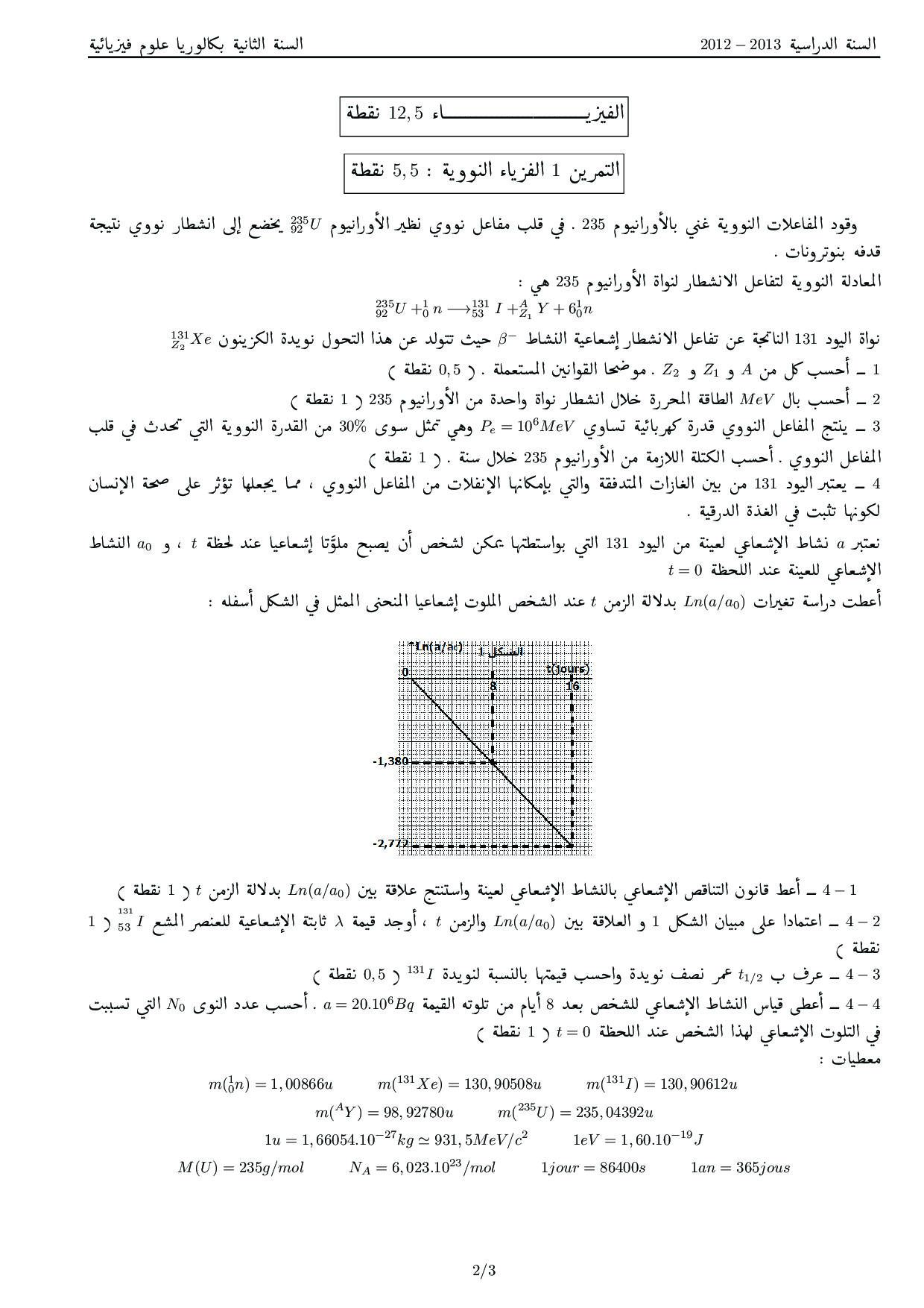 الفيزياء والكيمياء: الثانية باك علوم رياضية أ