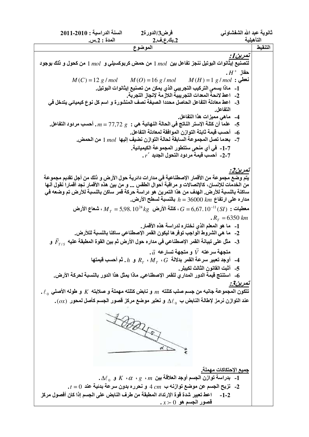 الفرض 3 نموذج 2 - الفيزياء والكيمياء ثانية باك علوم فيزيائية الدورة الثانية