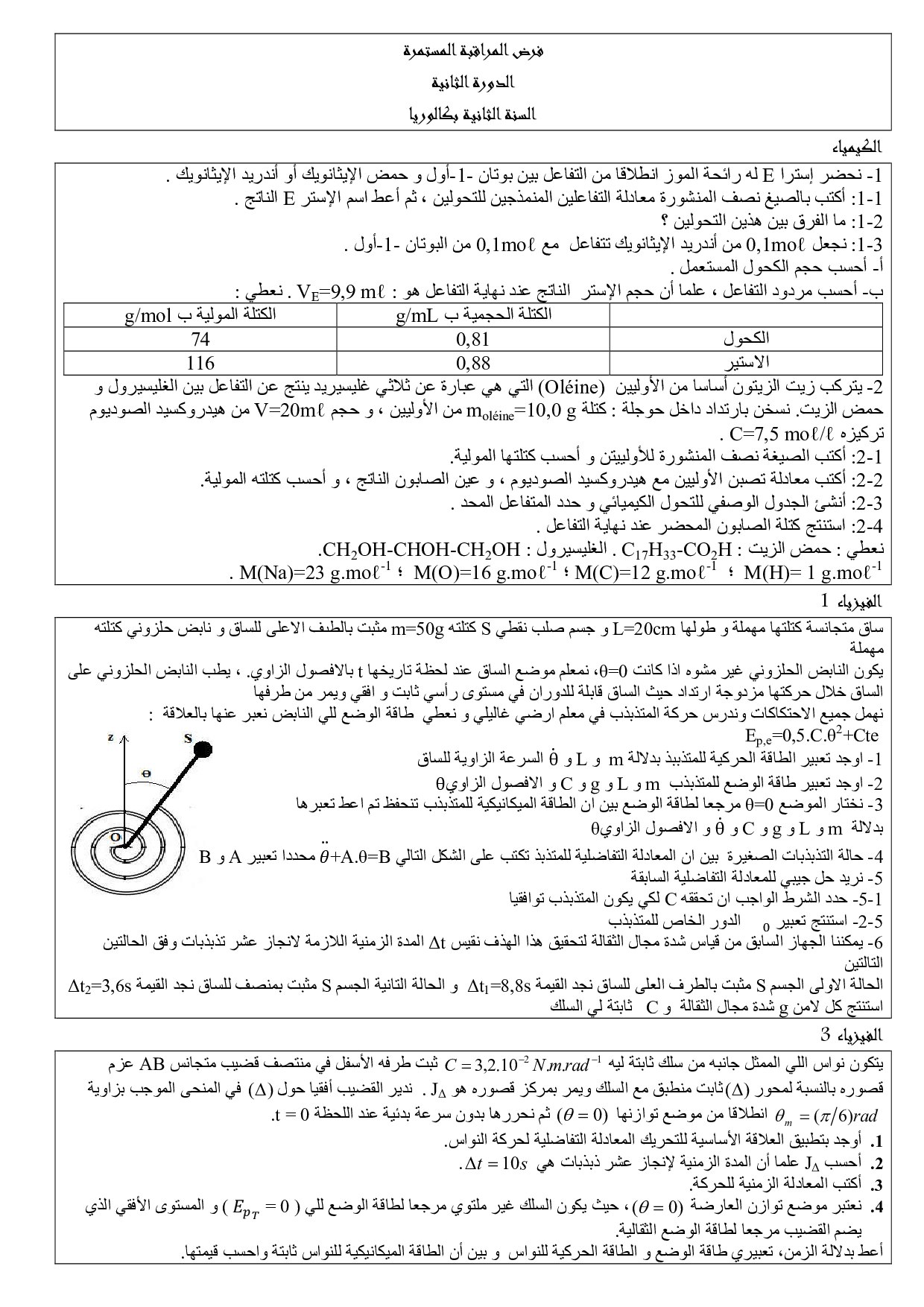 الفيزياء والكيمياء: الثانية باك علوم رياضية ب