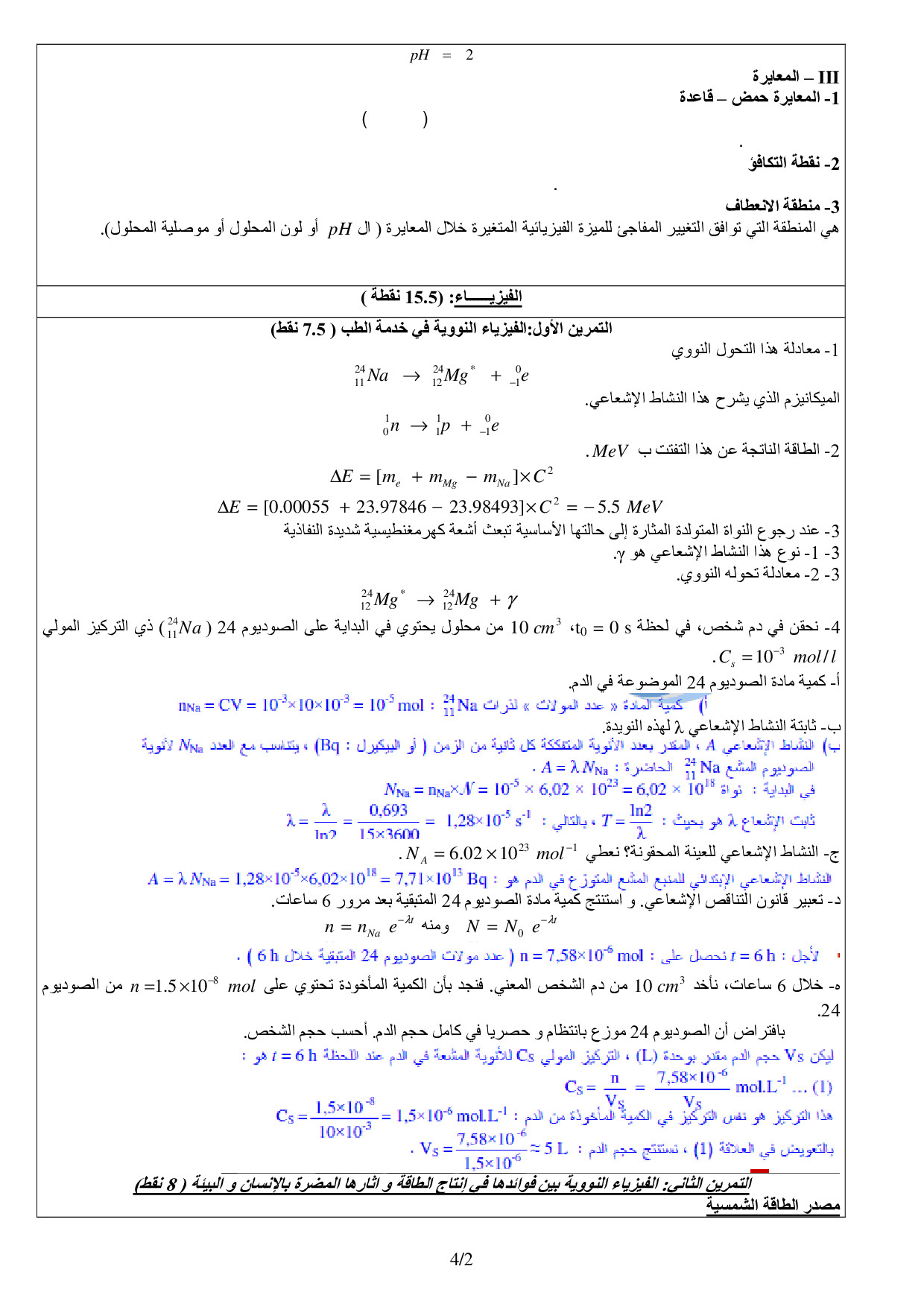الفرض 2 نموذج 2 - الفيزياء والكيمياء ثانية باك علوم الحياة والأرض الدورة الأولى (التصحيح)