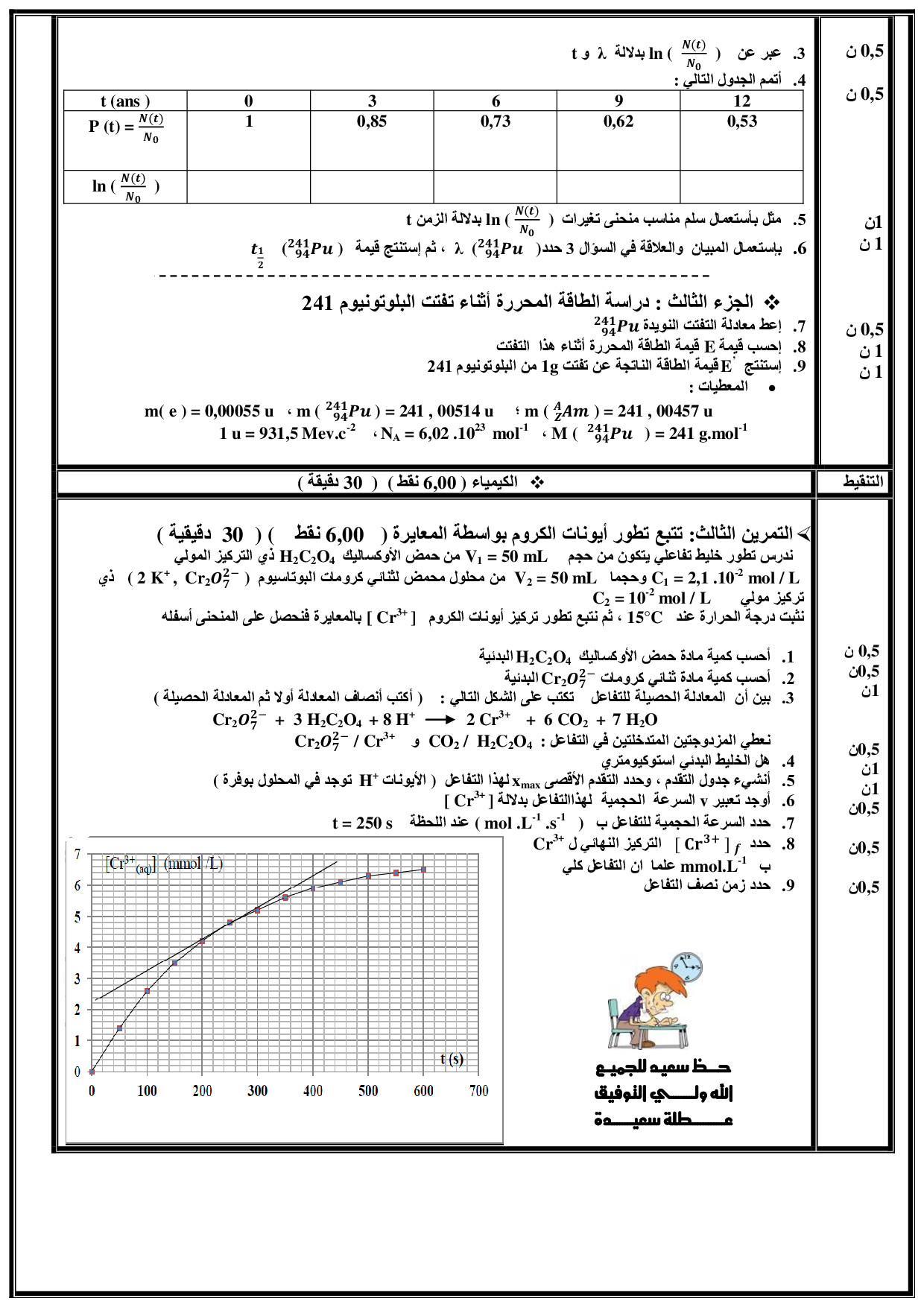 الفرض 2 نموذج 5 - الفيزياء والكيمياء ثانية باك علوم الحياة والأرض الدورة الأولى