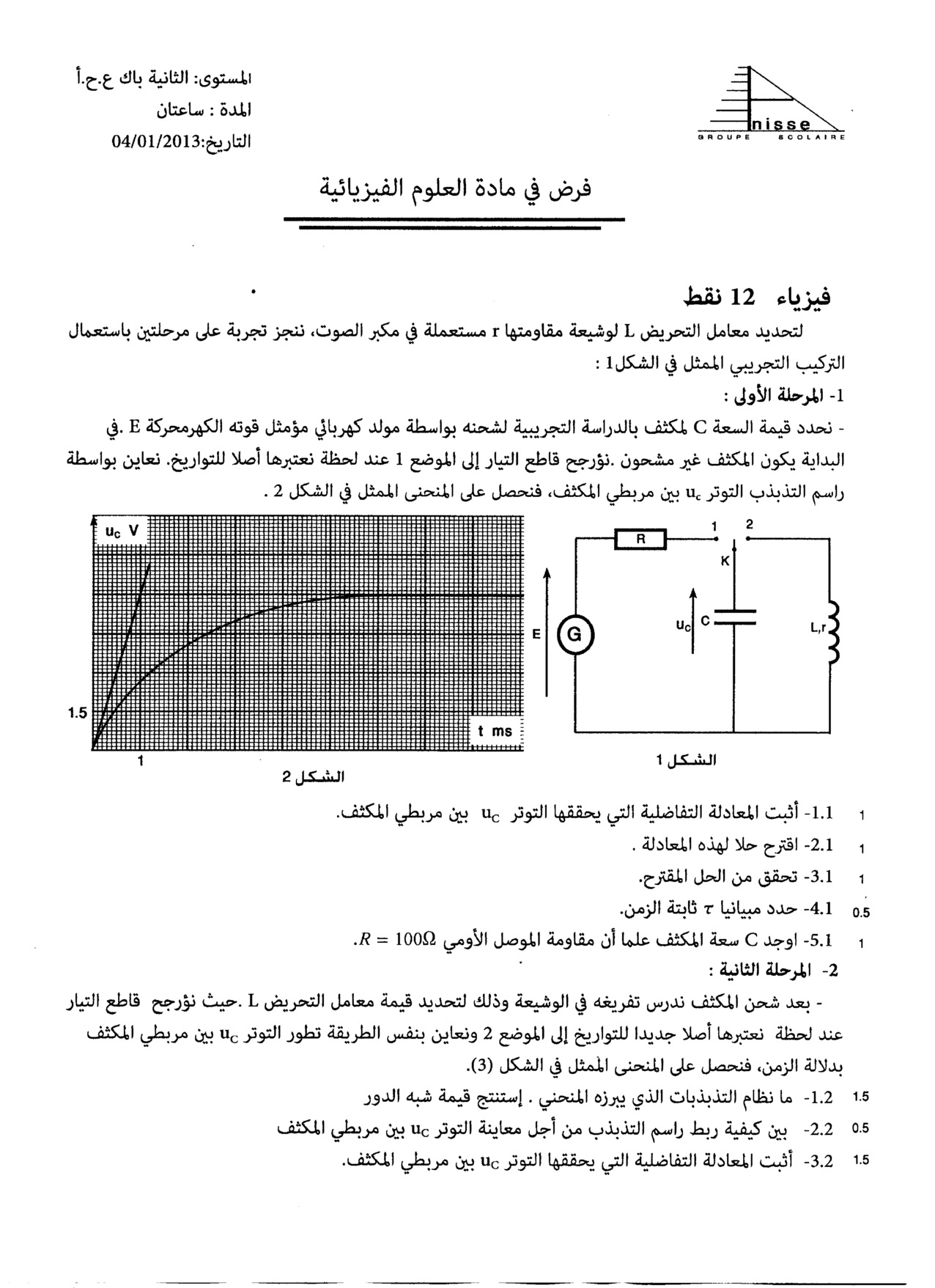 الفرض 3 نموذج 5 - الفيزياء والكيمياء ثانية باك علوم الحياة والأرض الدورة الأولى