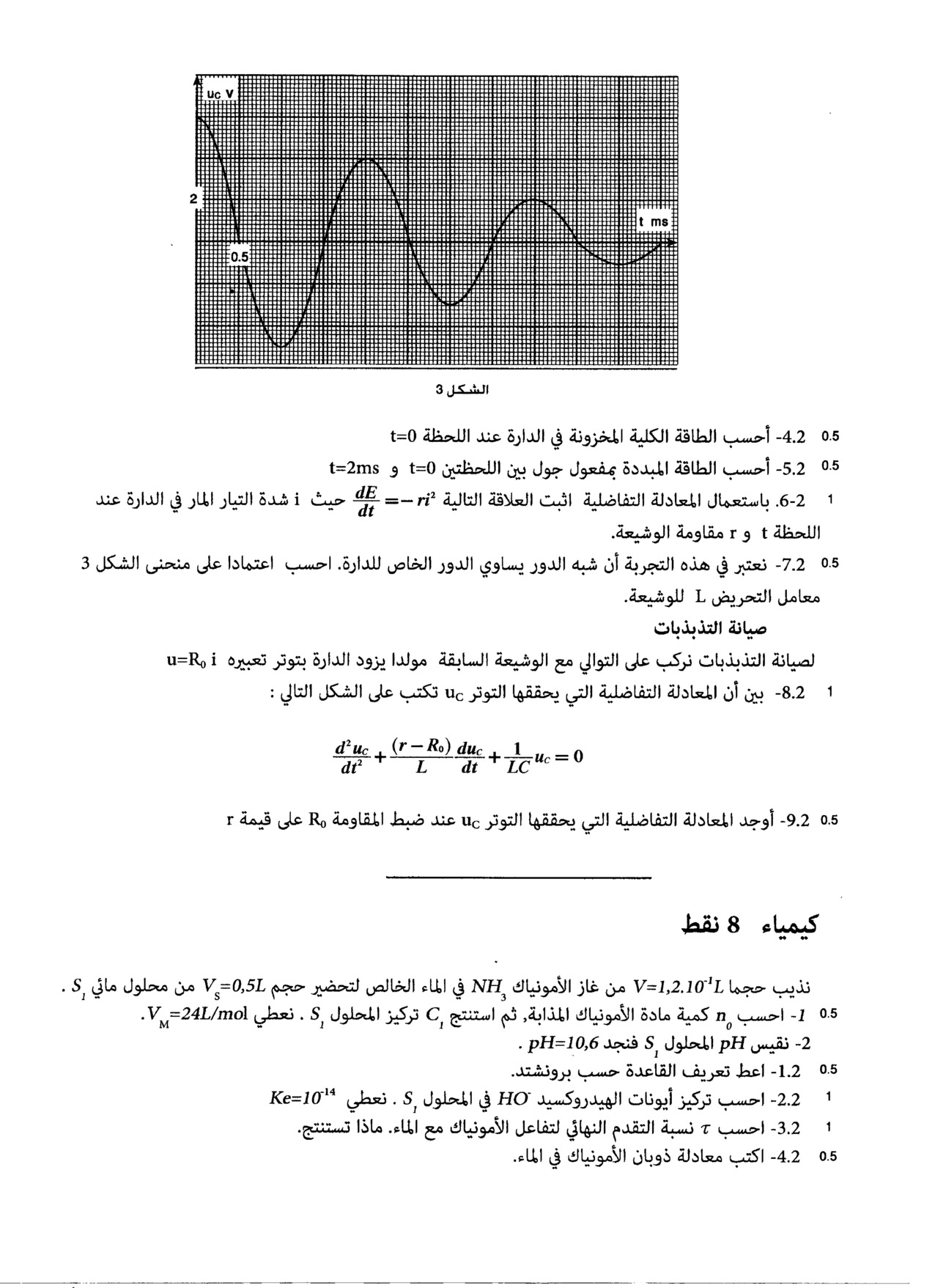 الفرض 3 نموذج 5 - الفيزياء والكيمياء ثانية باك علوم الحياة والأرض الدورة الأولى