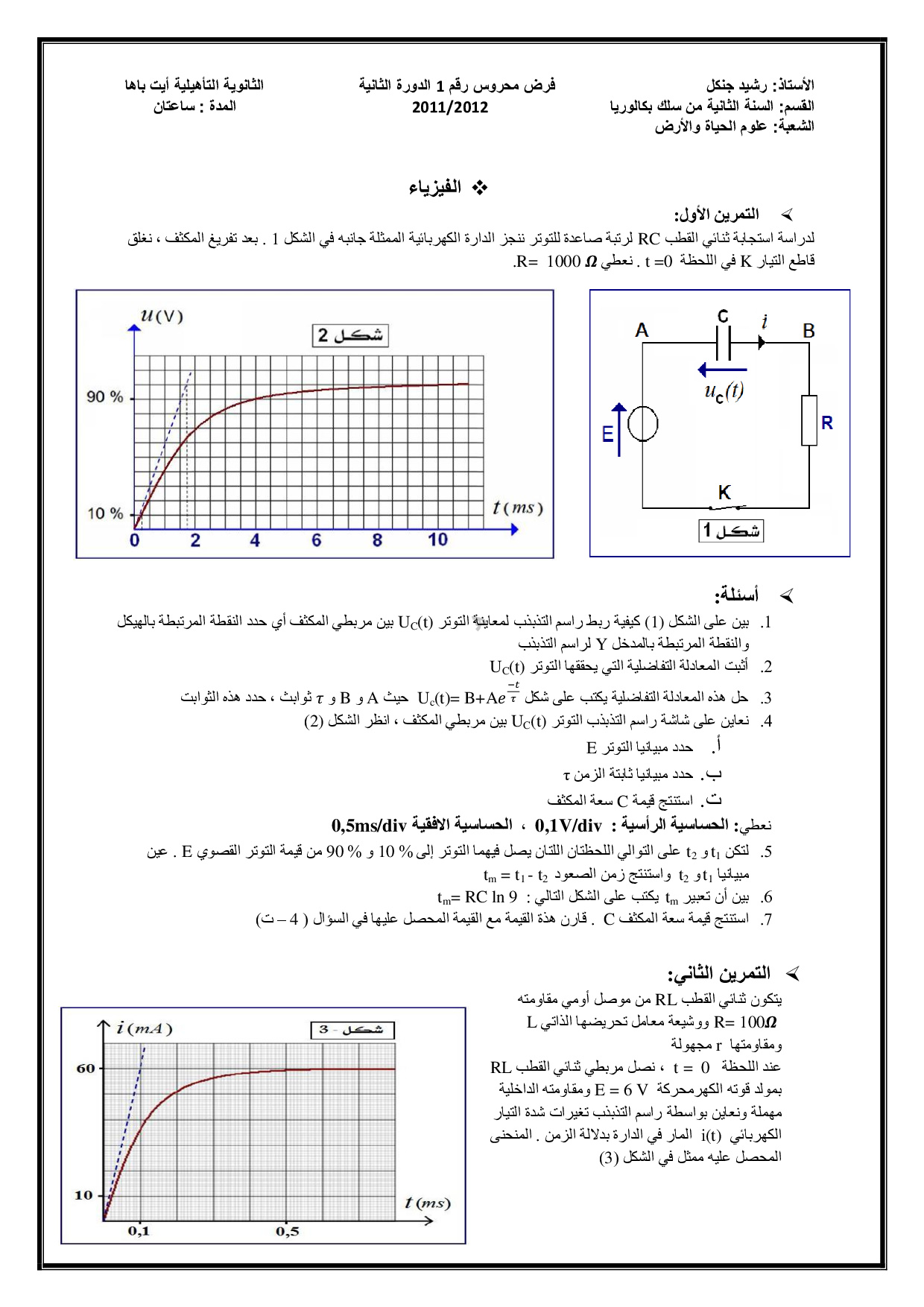 الفرض 1 نموذج 10 - الفيزياء والكيمياء ثانية باك علوم الحياة والأرض الدورة الثانية