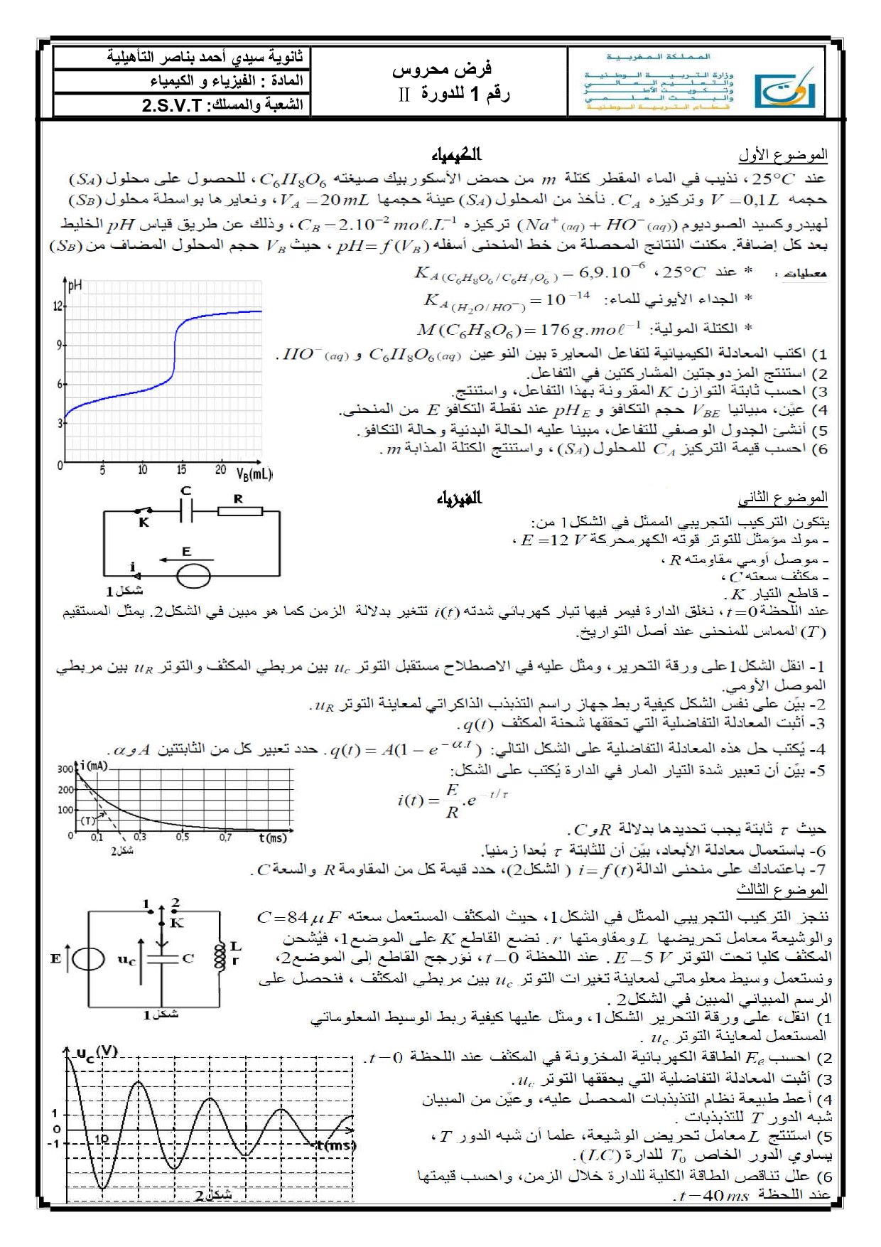 الفرض 1 نموذج 11 - الفيزياء والكيمياء ثانية باك علوم الحياة والأرض الدورة الثانية