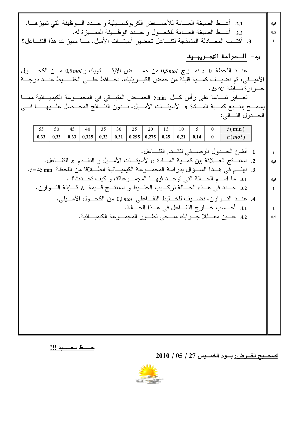 الفرض 2 نموذج 1 - الفيزياء والكيمياء ثانية باك علوم الحياة والأرض الدورة الثانية