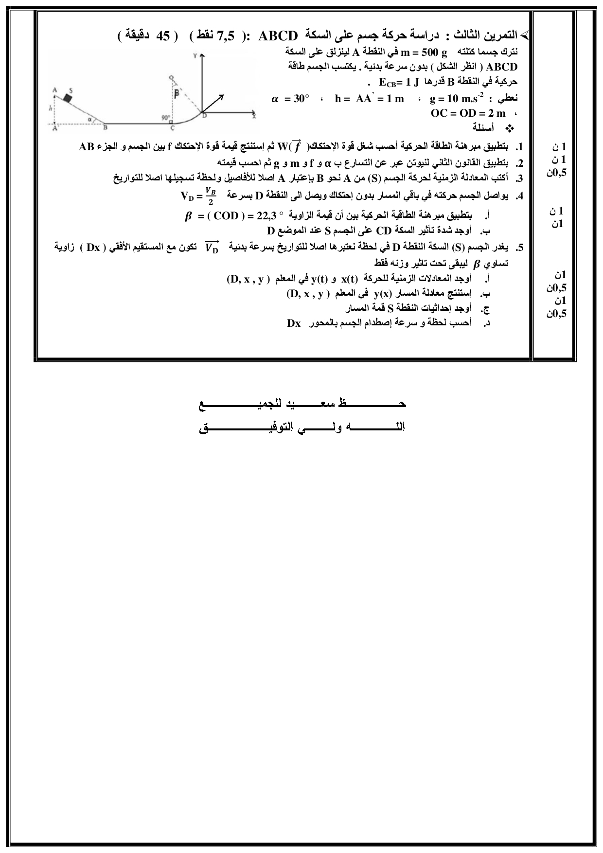 الفرض 2 نموذج 4 - الفيزياء والكيمياء ثانية باك علوم الحياة والأرض الدورة الثانية