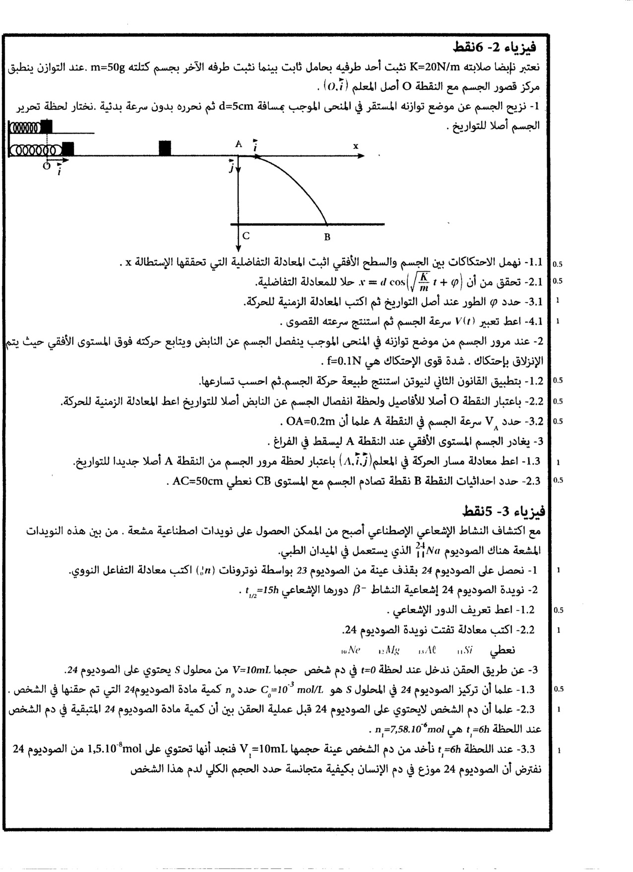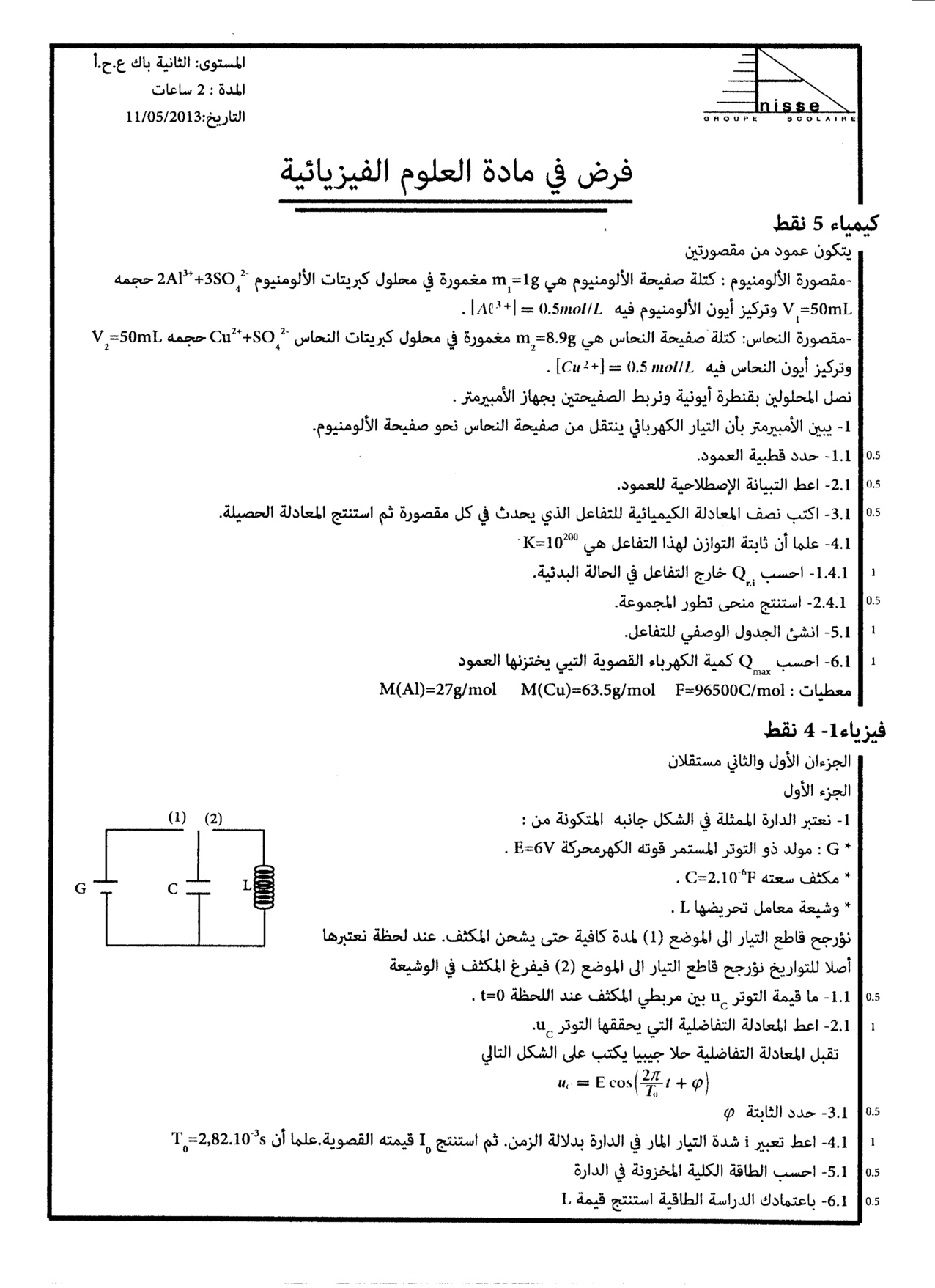 الفرض 2 نموذج 10 - الفيزياء والكيمياء ثانية باك علوم الحياة والأرض الدورة الثانية