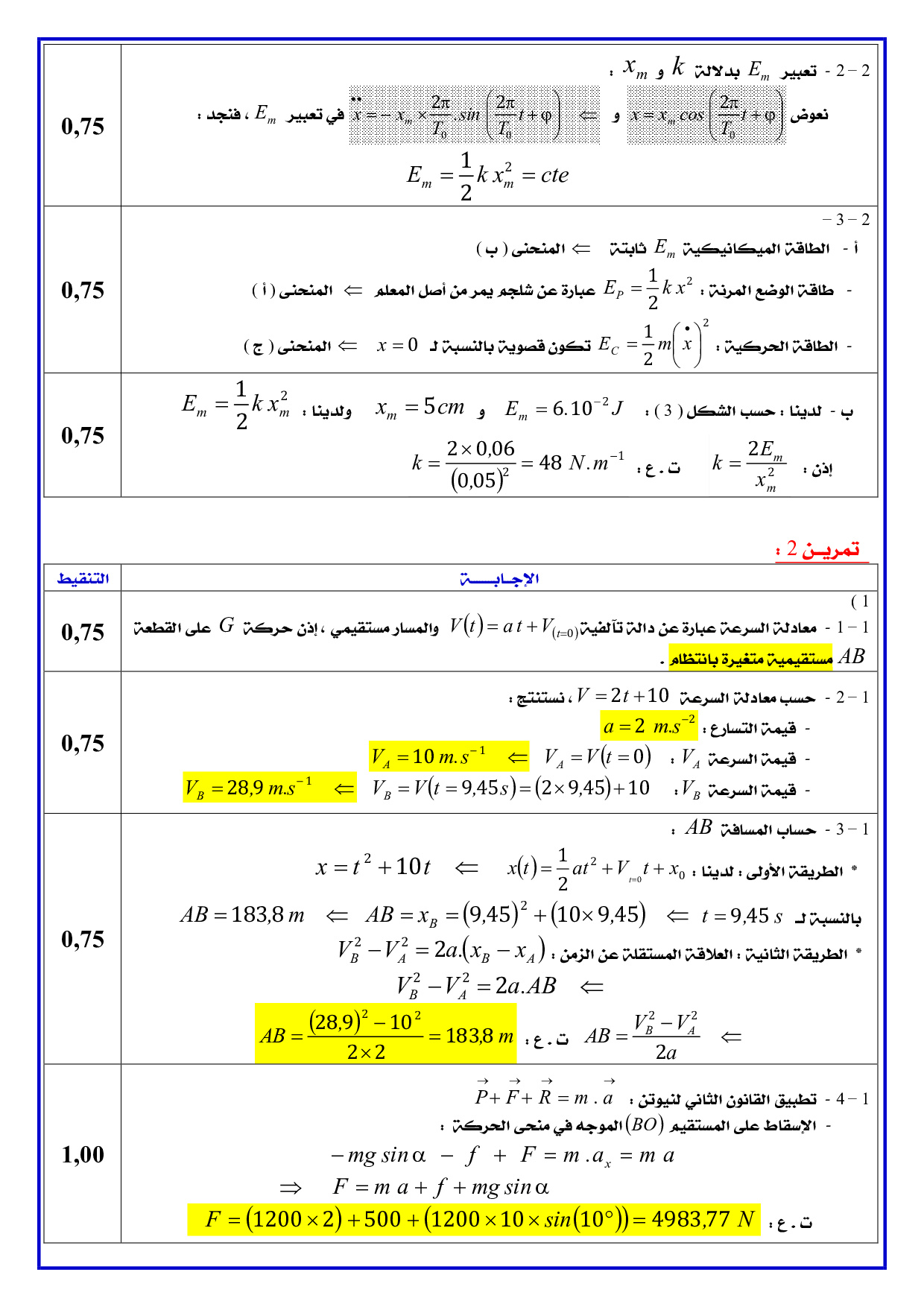 الفرض 3 نموذج 1 - الفيزياء والكيمياء ثانية باك علوم الحياة والأرض الدورة الثانية (التصحيح)