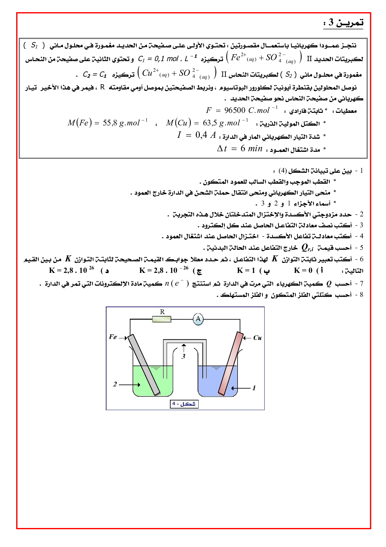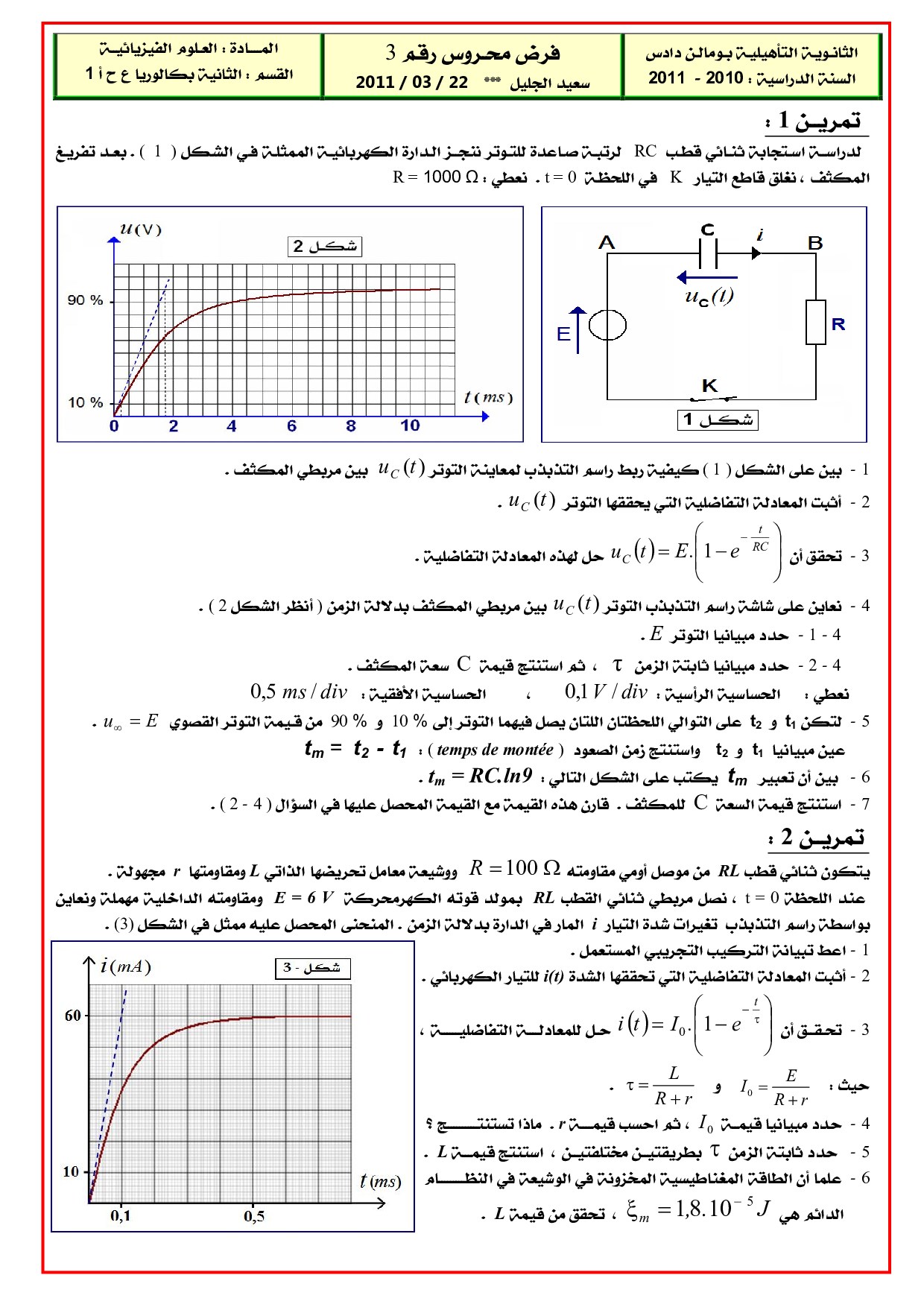 الفرض 3 نموذج 2 - الفيزياء والكيمياء ثانية باك علوم الحياة والأرض الدورة الثانية