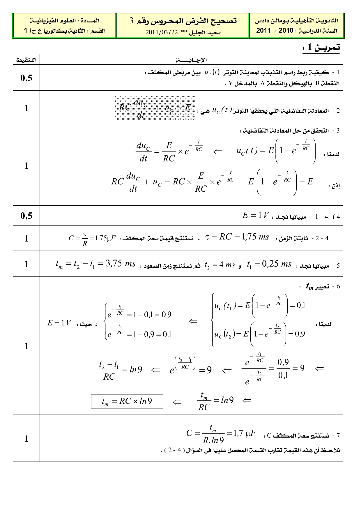 الفرض 3 نموذج 2 - الفيزياء والكيمياء ثانية باك علوم الحياة والأرض الدورة الثانية (التصحيح)