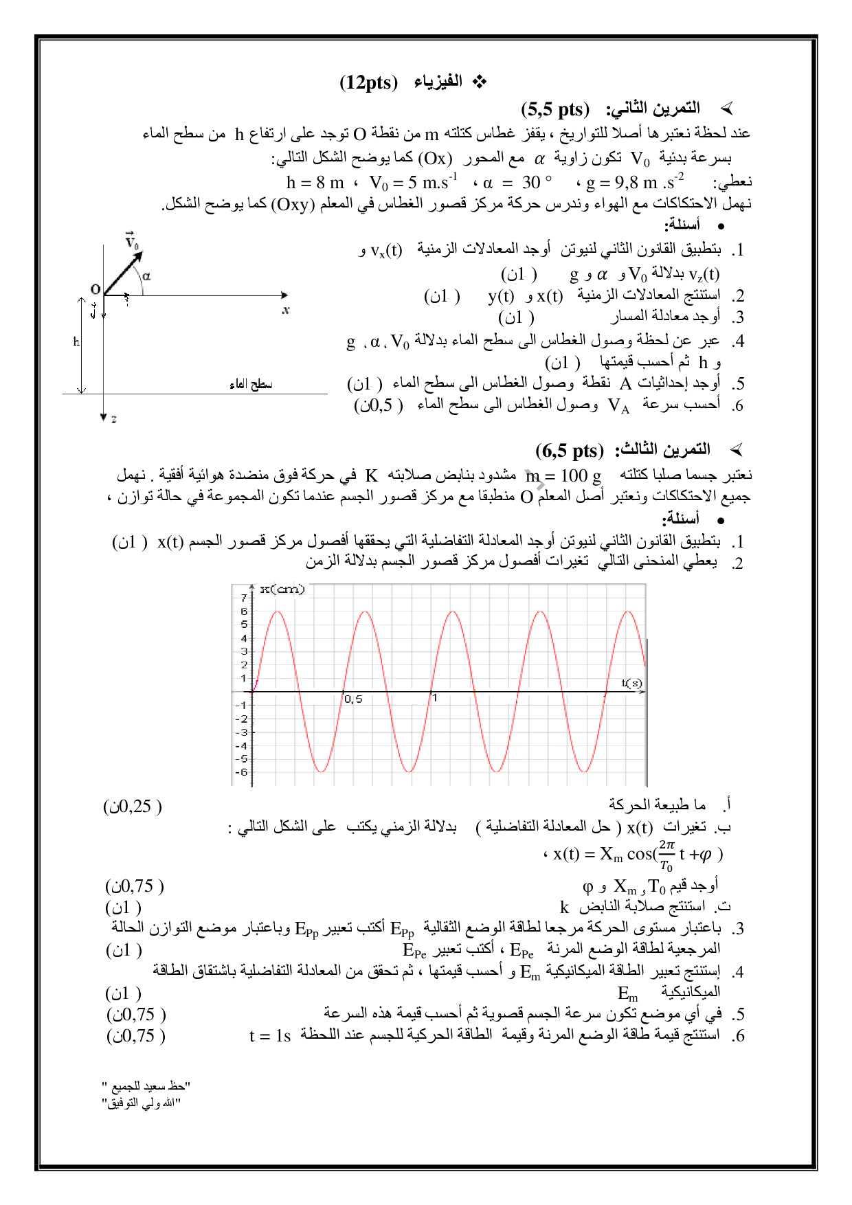 الفرض 3 نموذج 4 - الفيزياء والكيمياء ثانية باك علوم الحياة والأرض الدورة الثانية