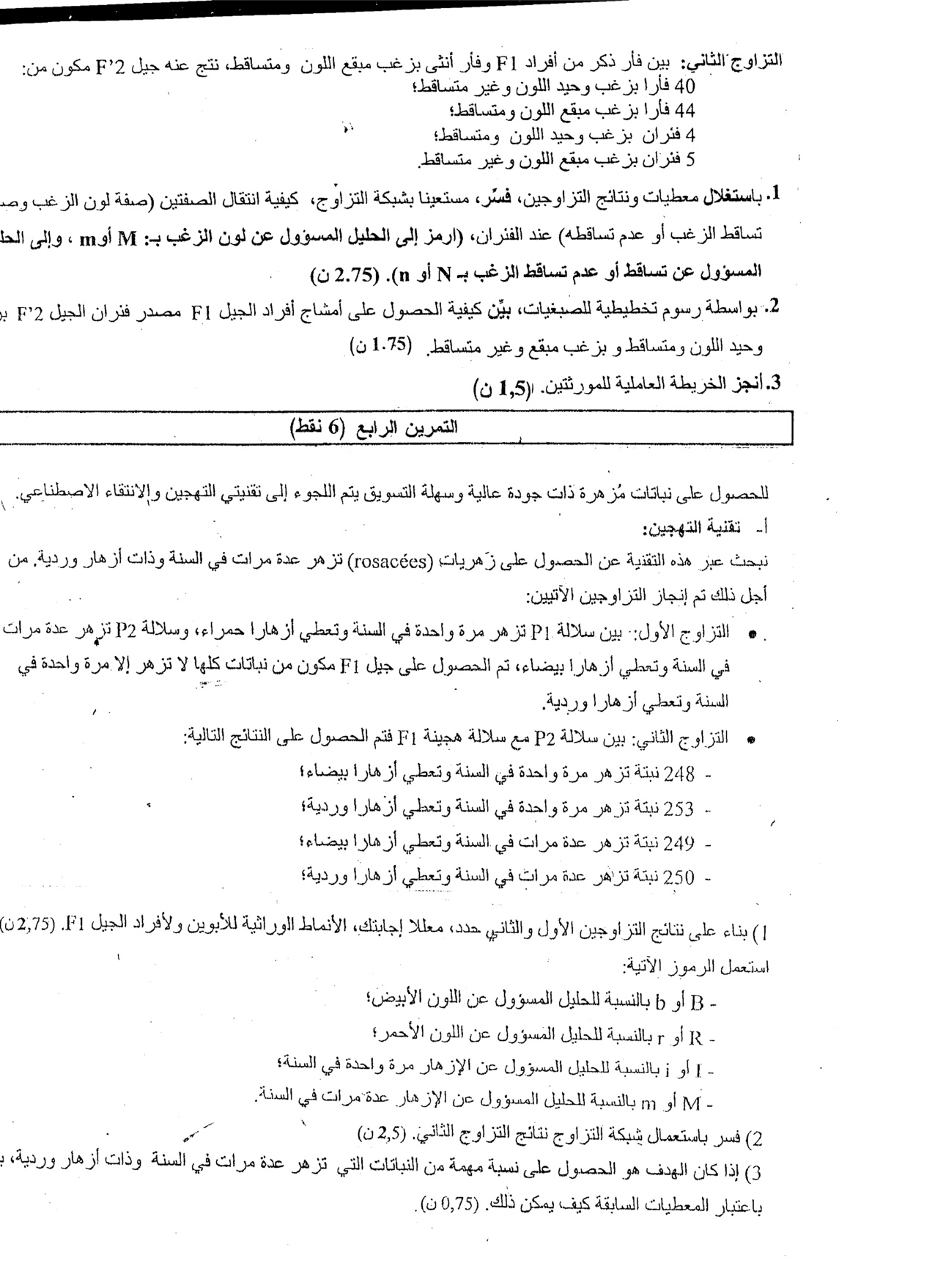 الفرض 2 نموذج 4 - علوم الحياة والارض ثانية باك علوم رياضية أ الدورة الأولى
