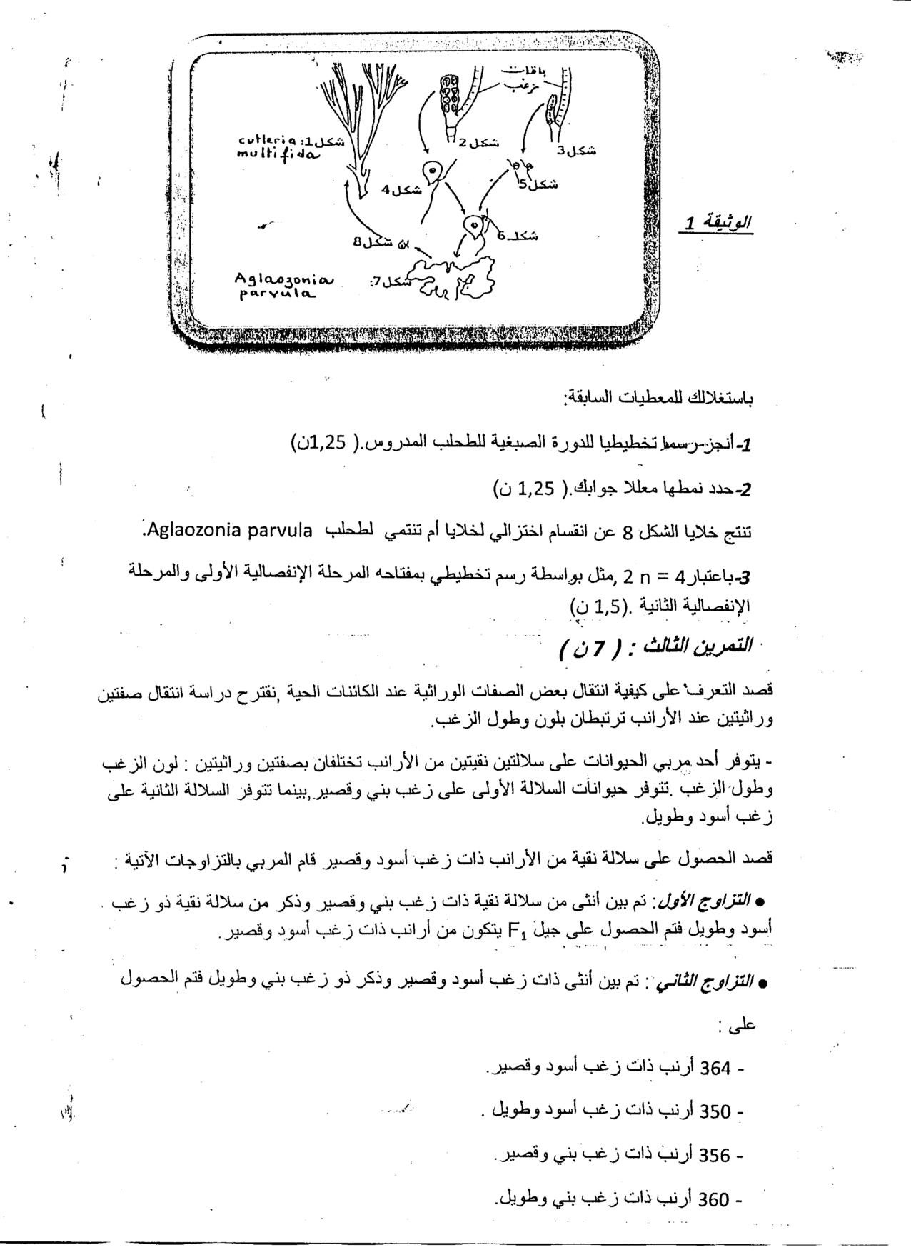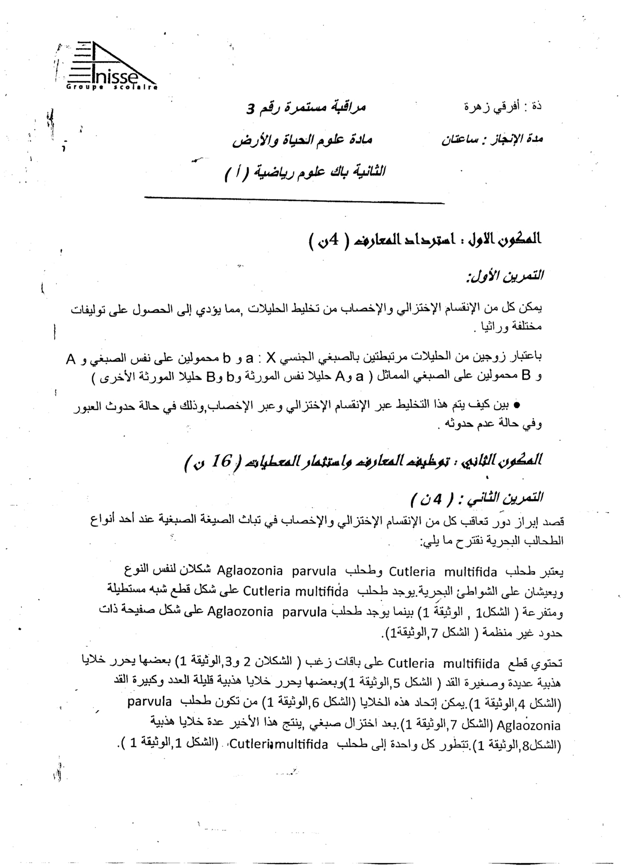 الفرض 3 نموذج 2 - علوم الحياة والارض ثانية باك علوم رياضية أ الدورة الأولى