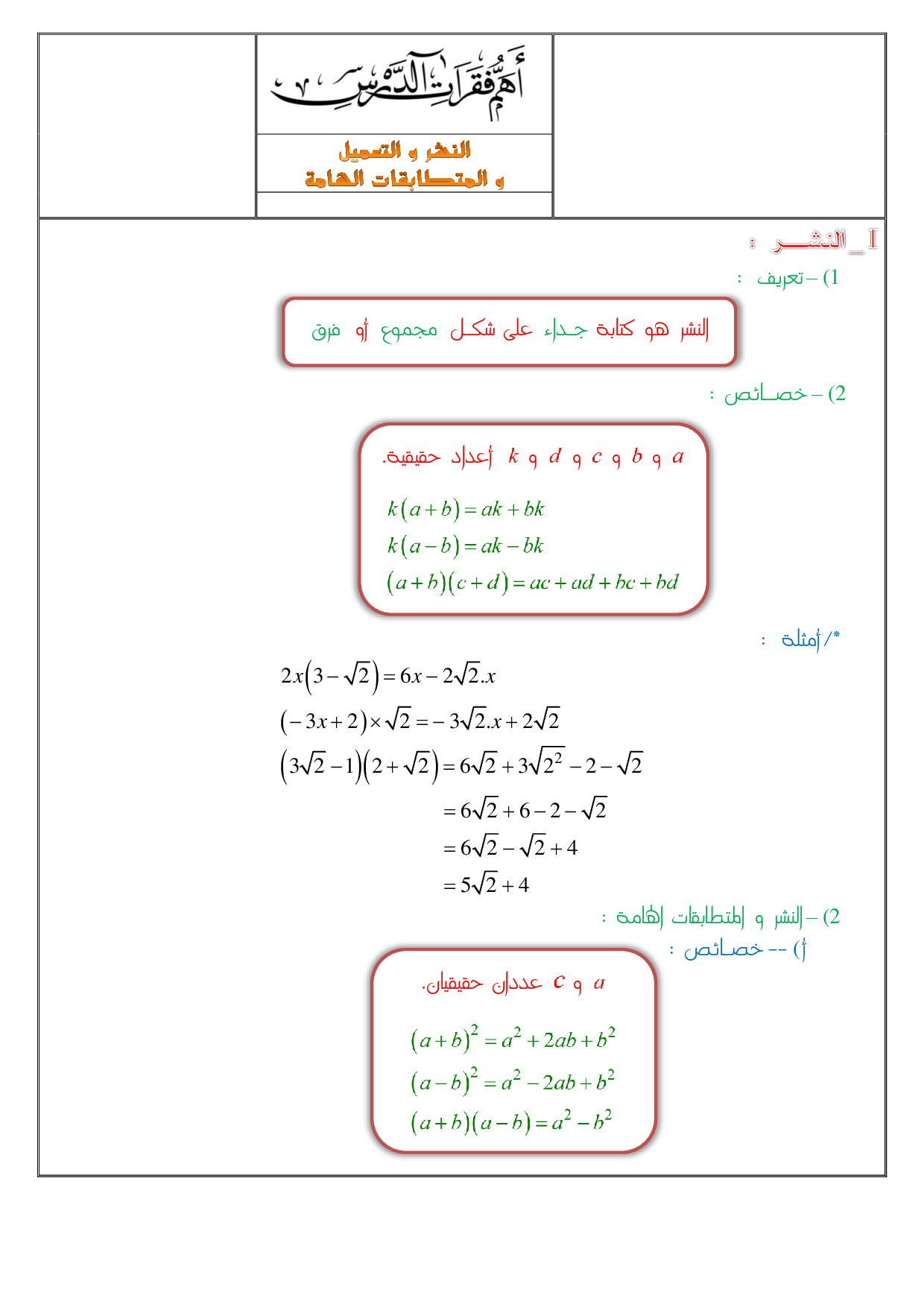 النشر والتعميل والمتطابقات الهامة - ملخص الدرس 1