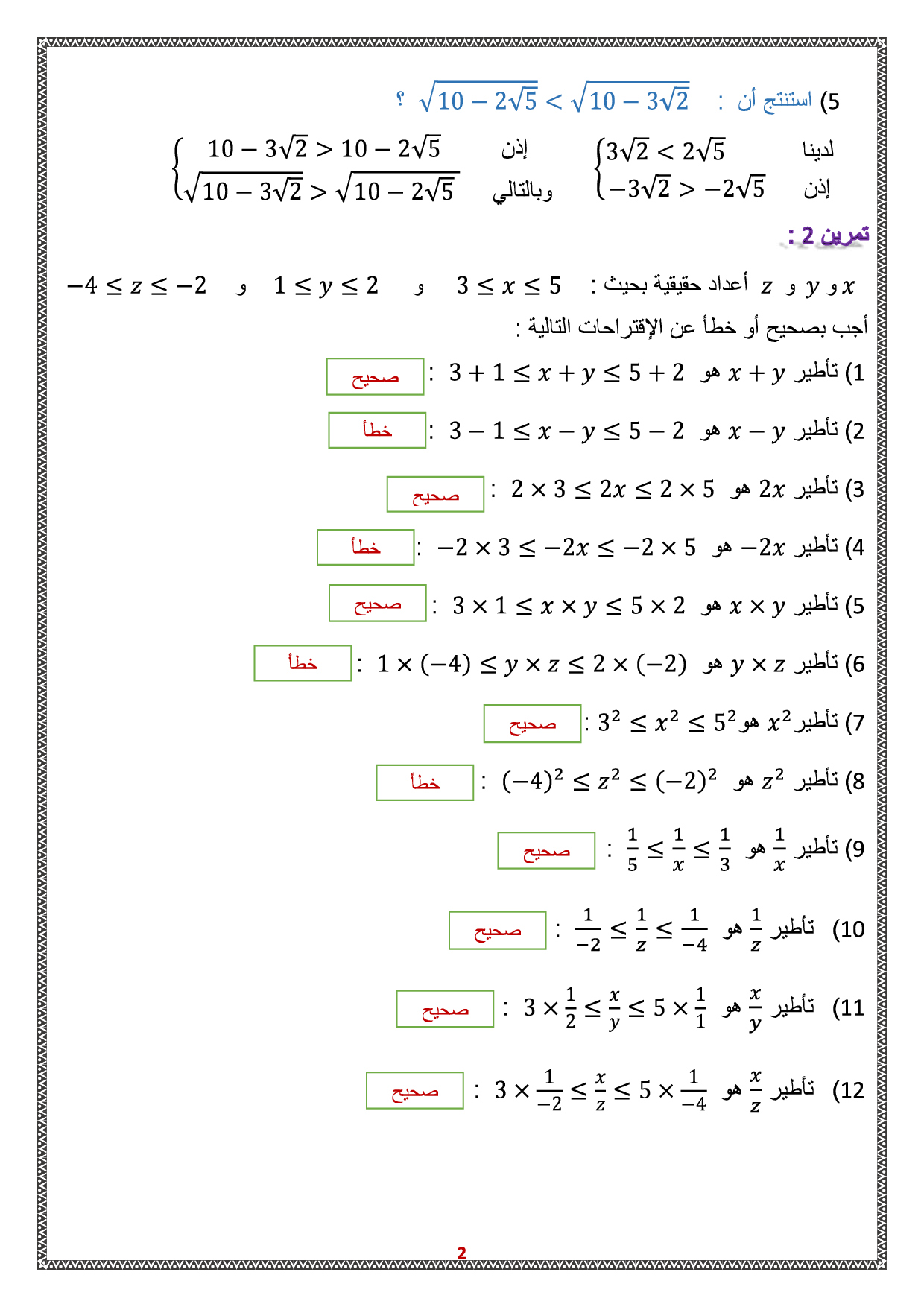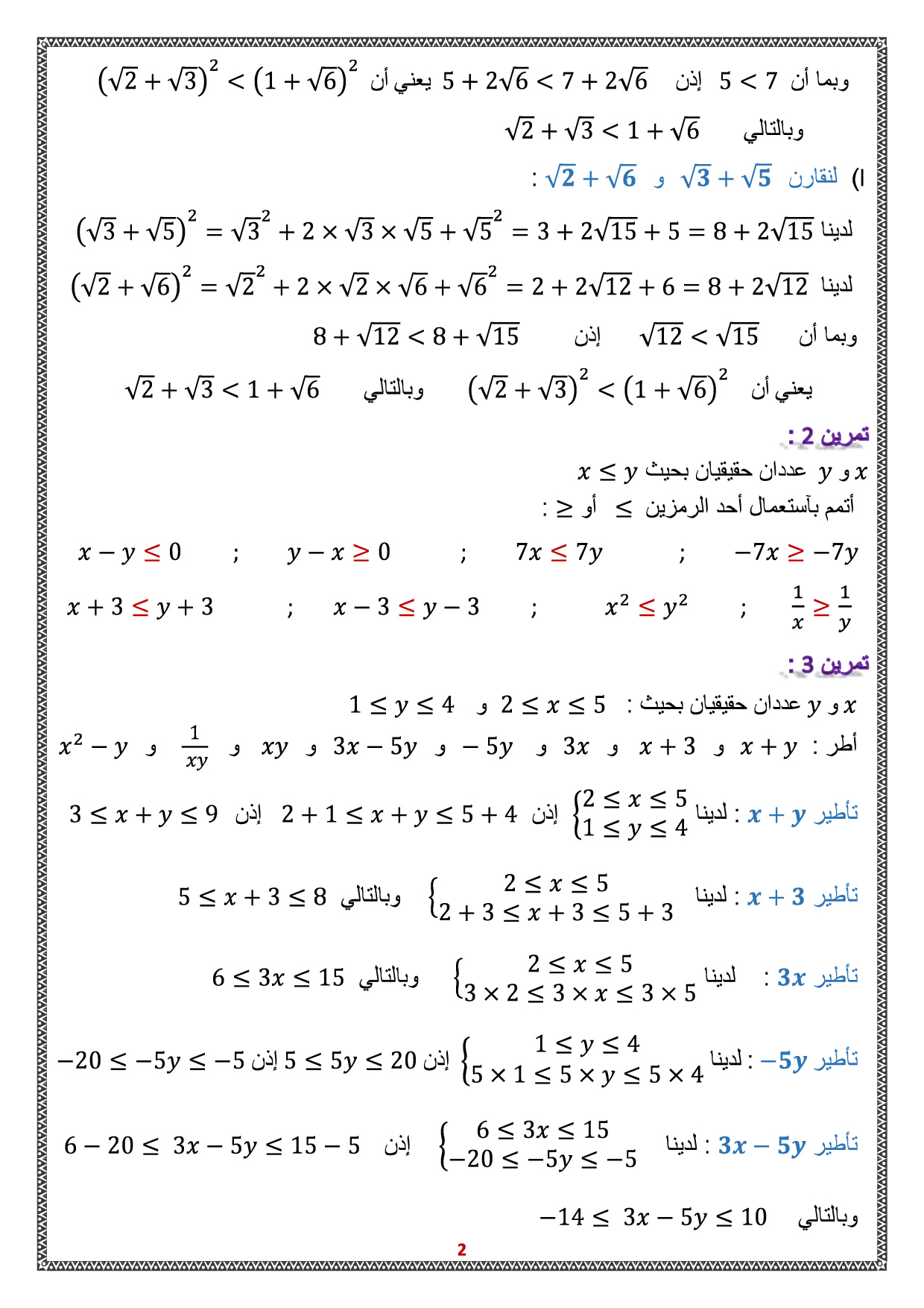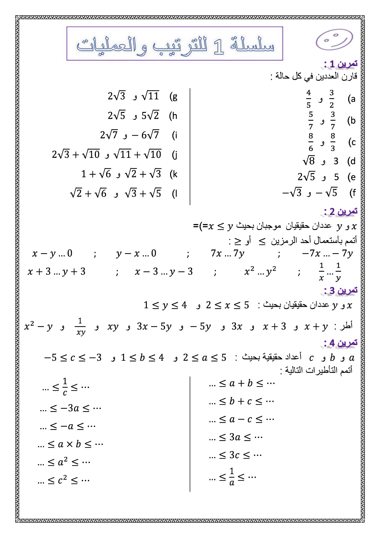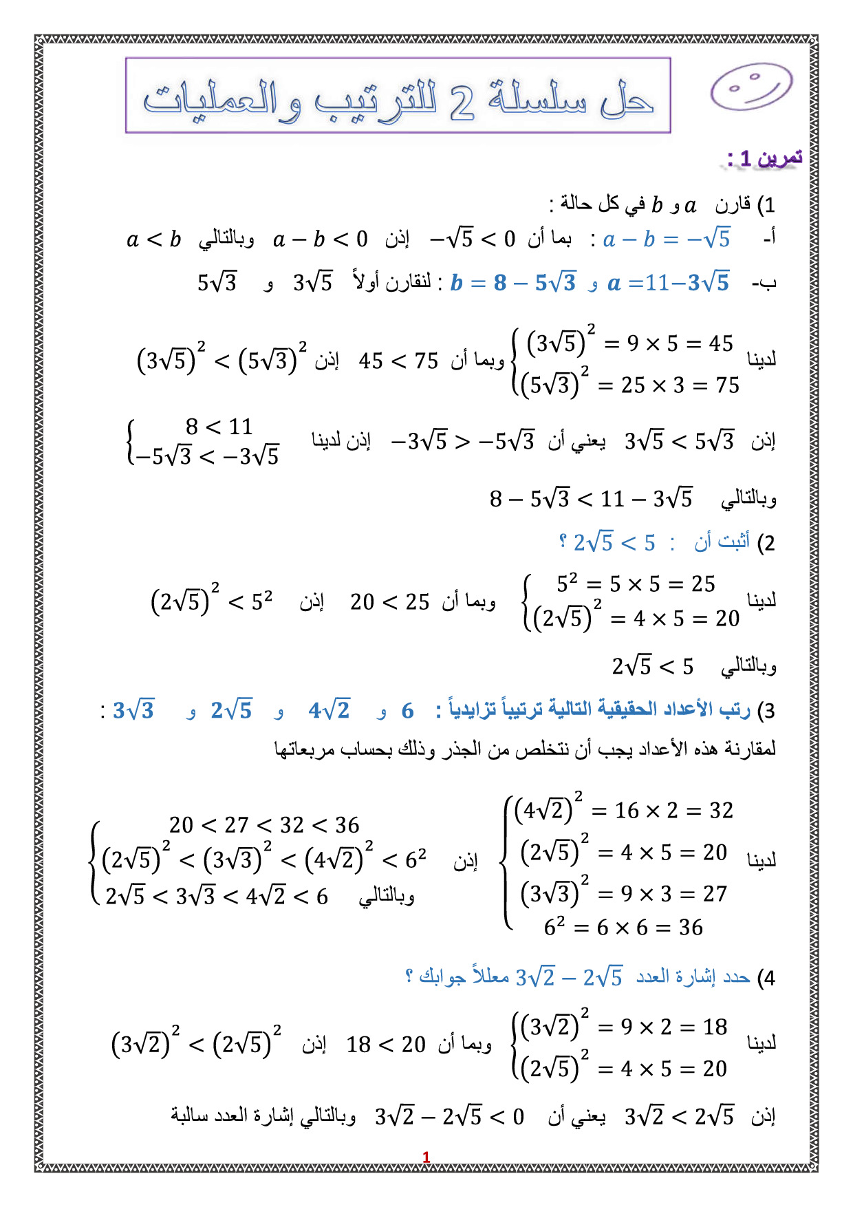 الترتيب والعمليات - تمارين محلولة 1