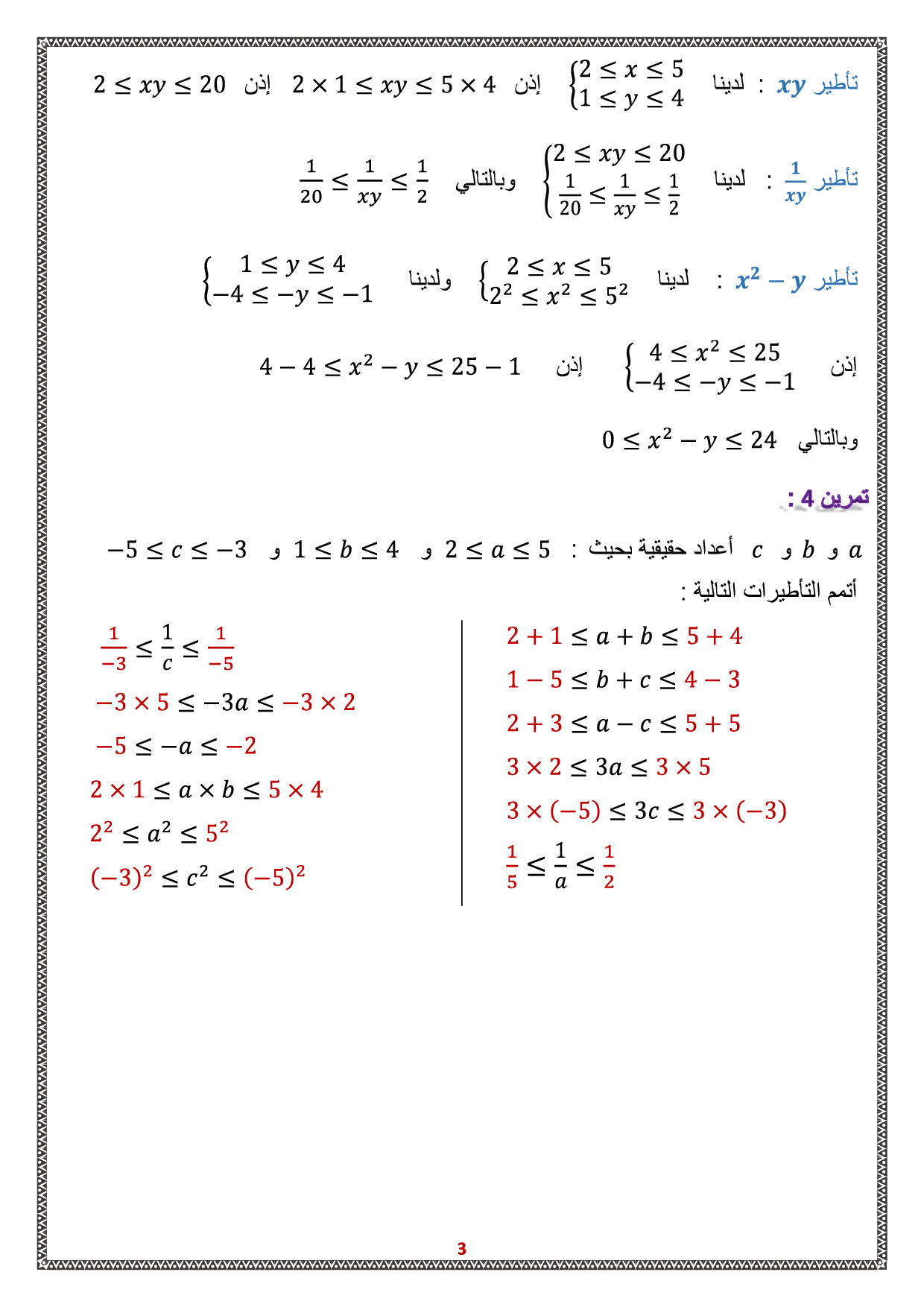 الرياضيات: الثالثة إعدادي