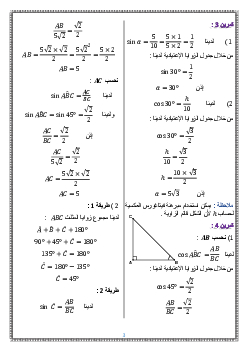 المثلث القائم الزاوية والحساب المثلثي - تمارين محلولة 1