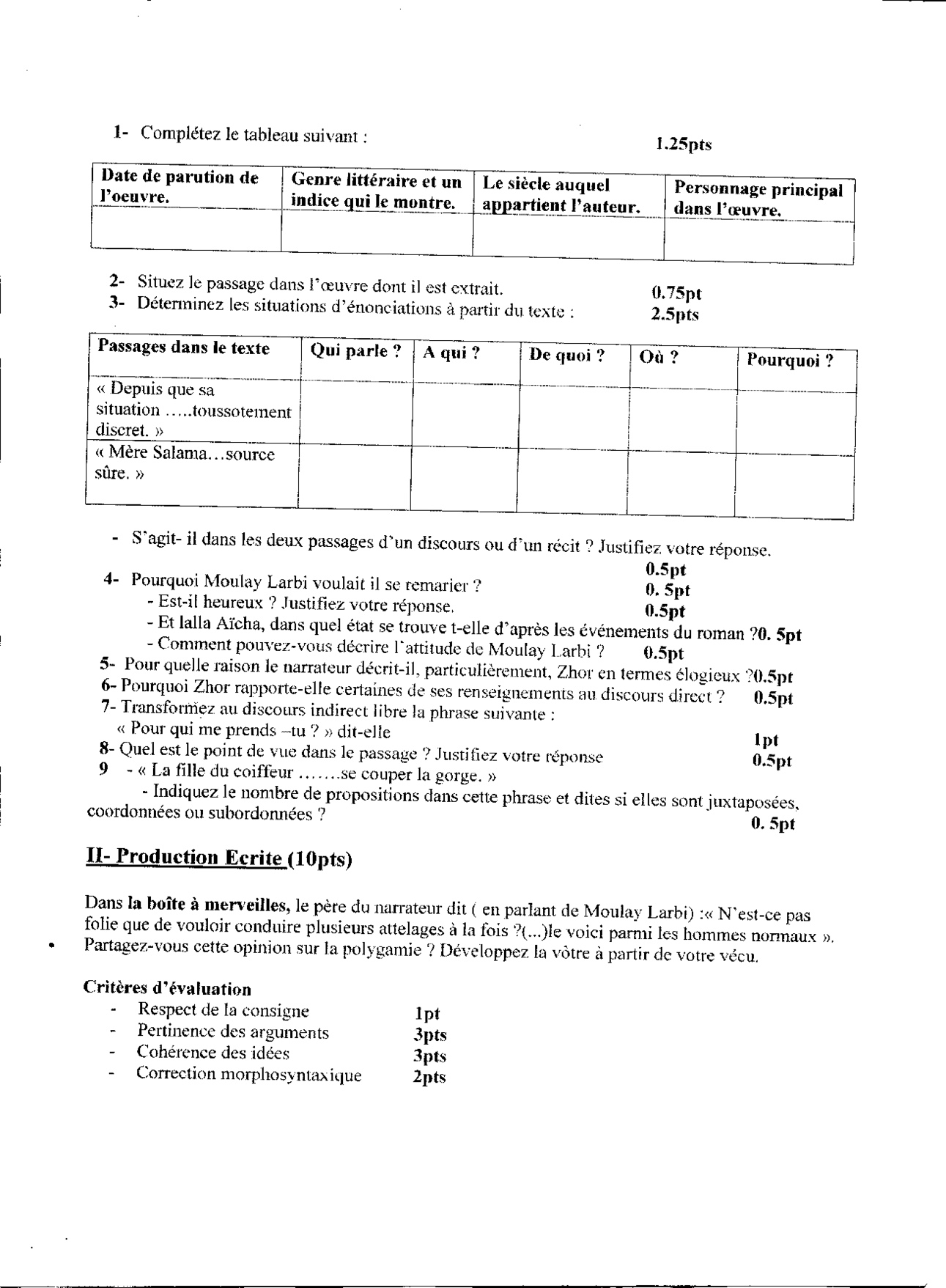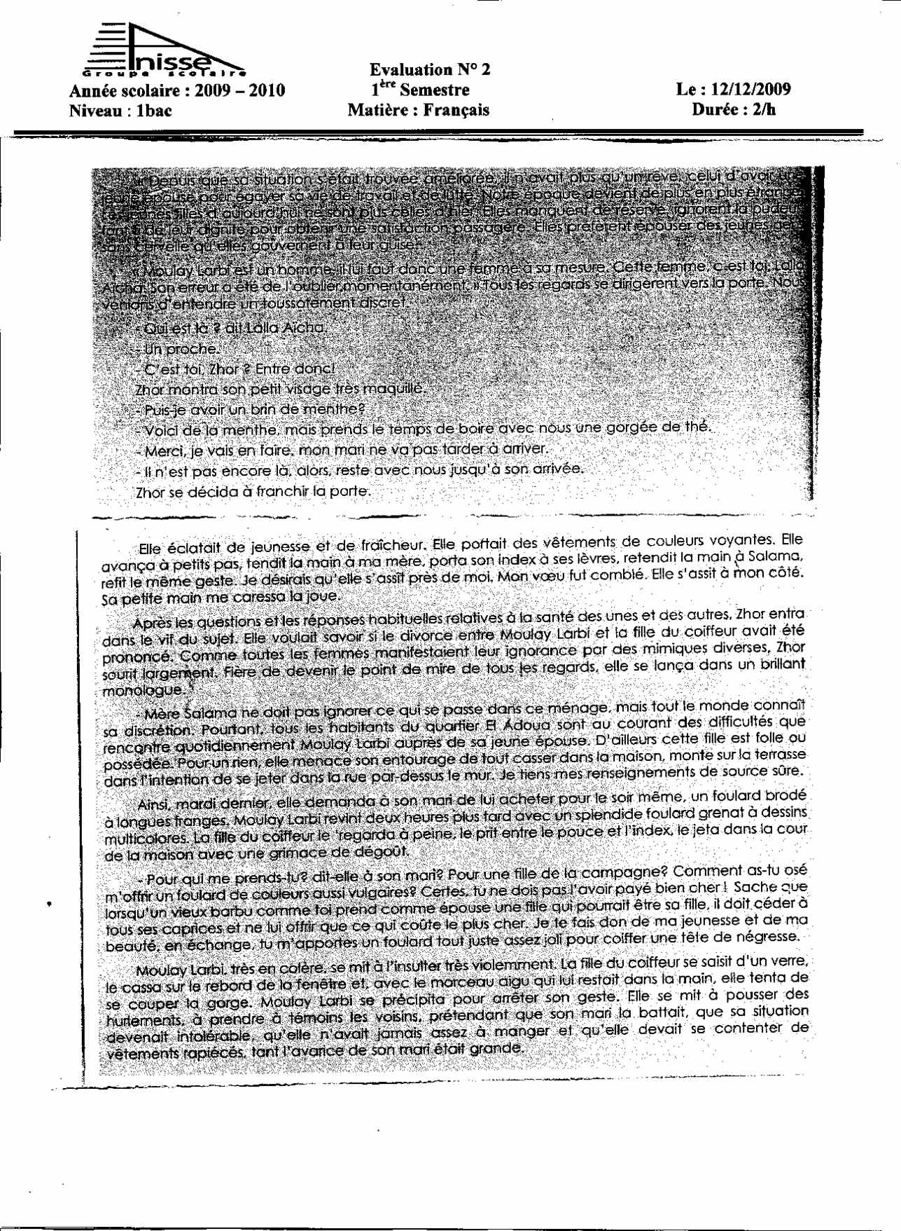 Devoir 2 Modèle 2 - Français 2 BAC Semestre 1