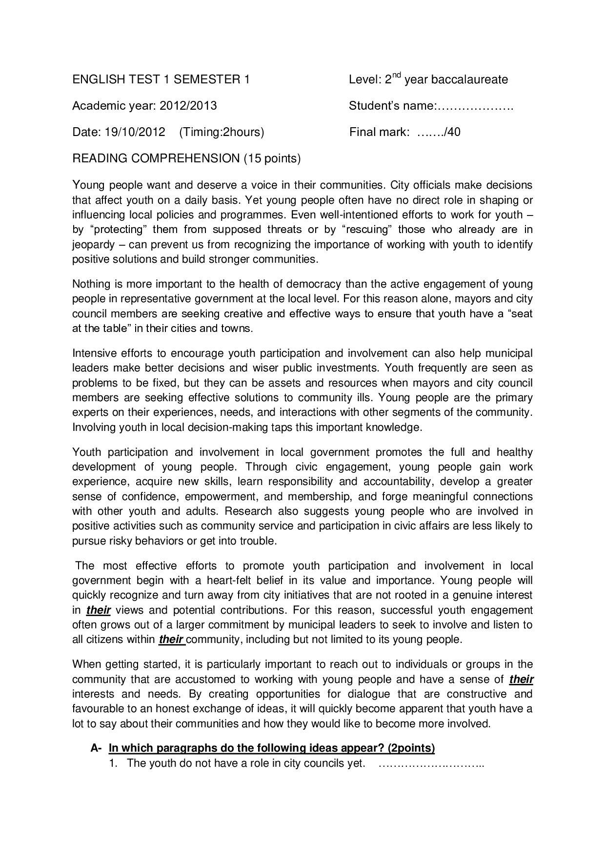 First term english tests