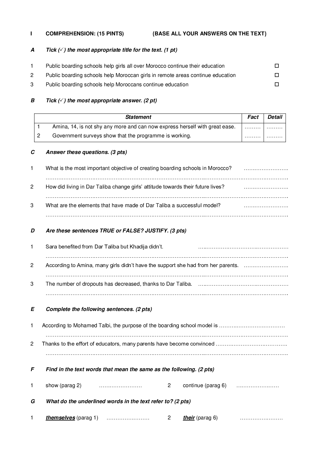 Test 3 Model 5 - English 2 Bac First term