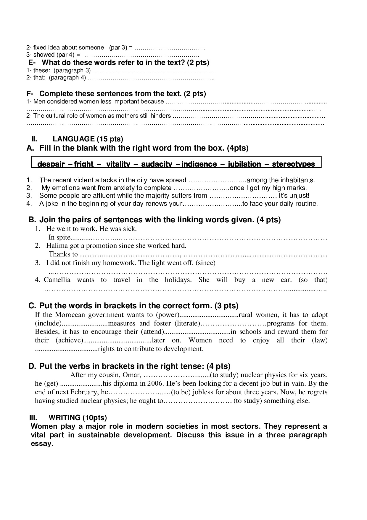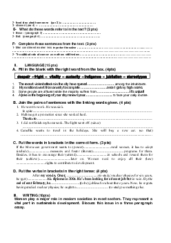Test 3 Model 8 - English 2 Bac First term