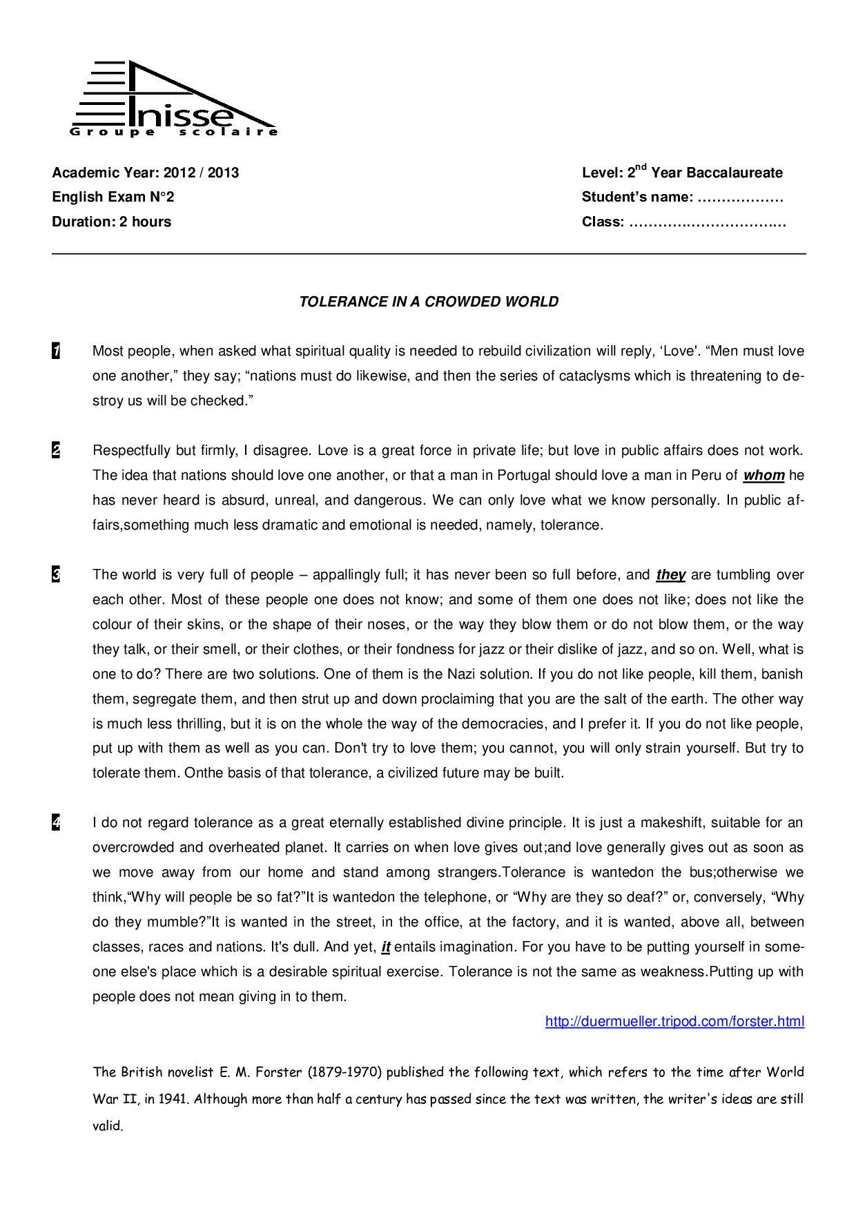 Test 2 Model 6 - English 2 Bac Second term