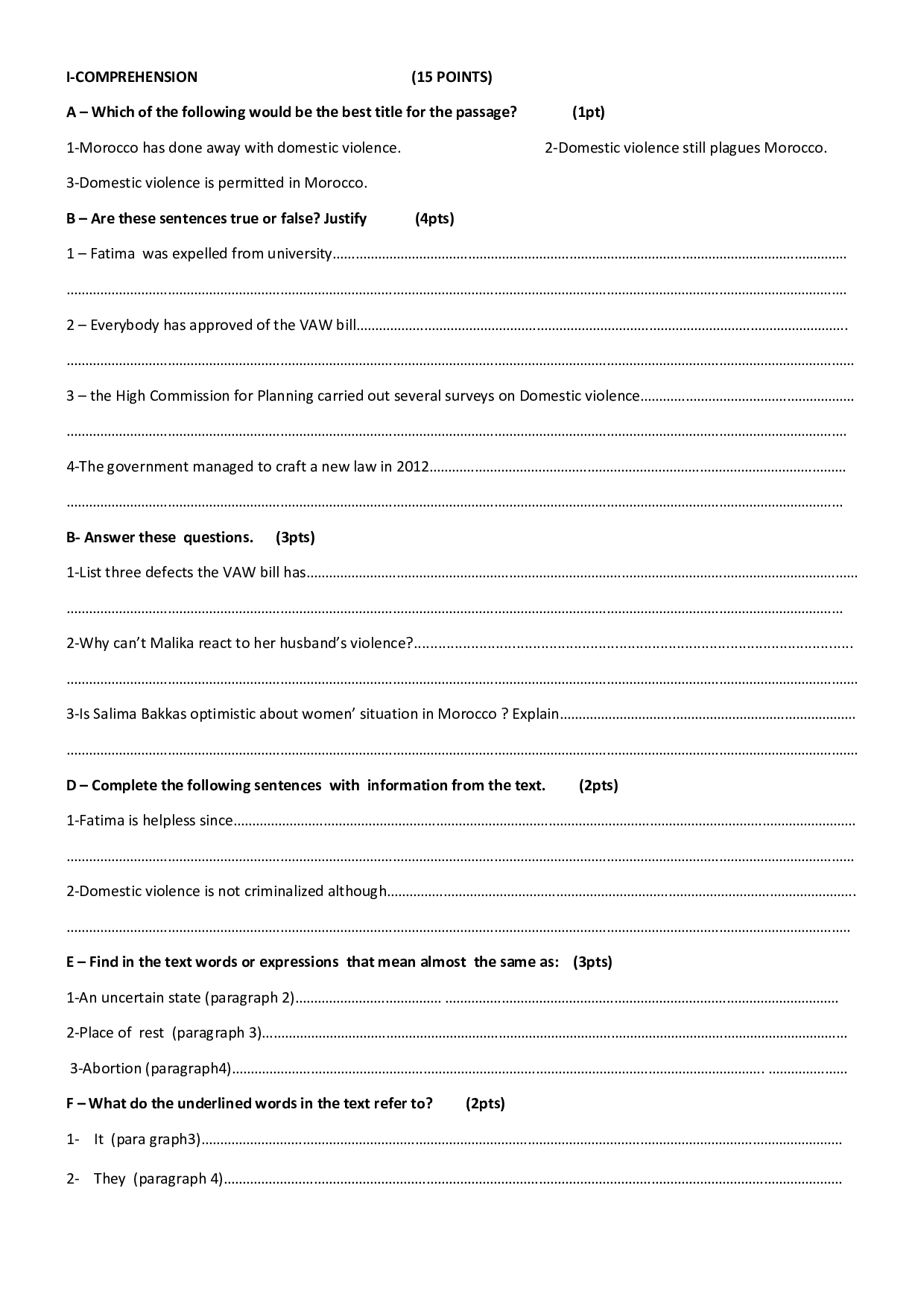 Test 3 Model 1 - English 2 Bac Second term