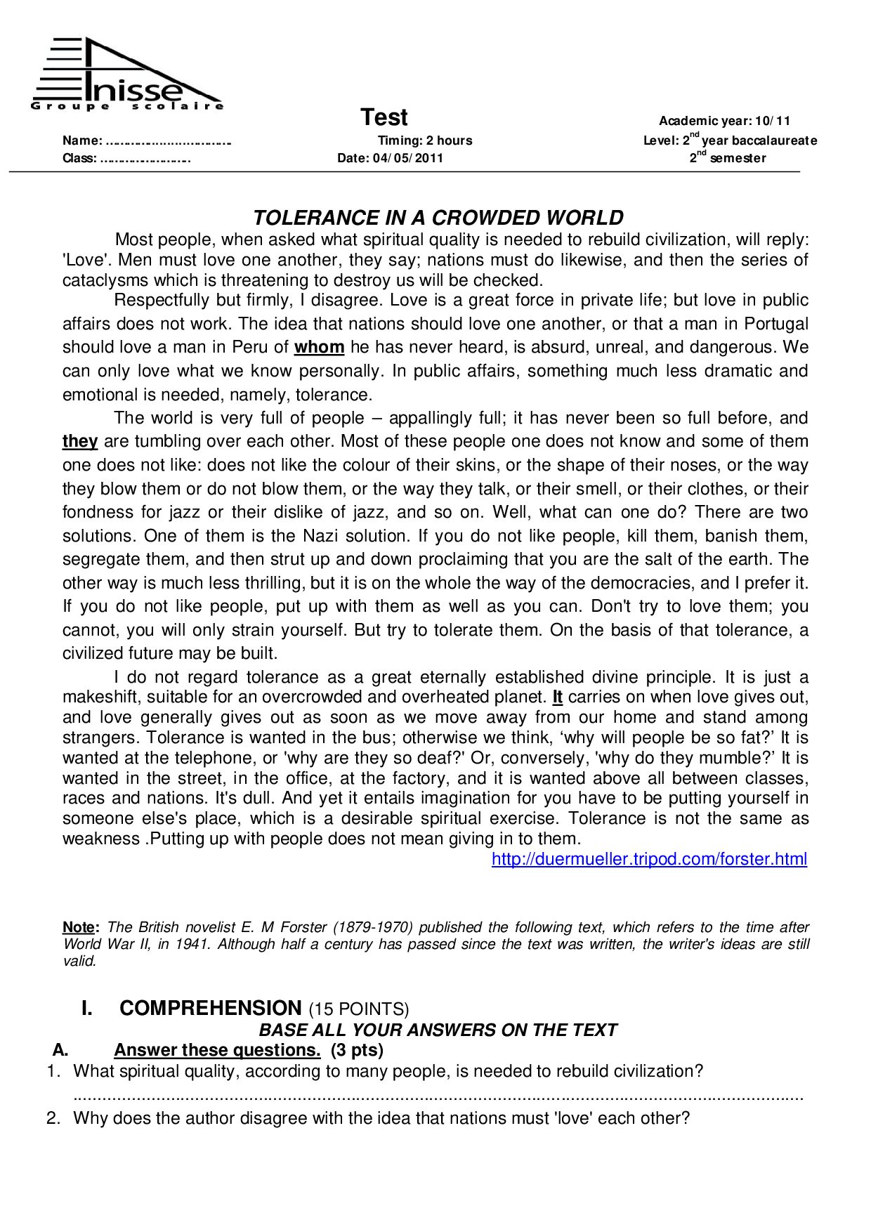 Second term english tests