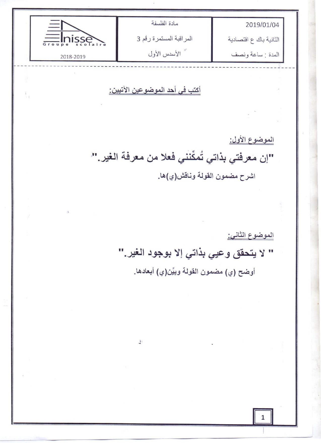 الفرض 3 نموذج 1 - الفلسفة ثانية باك علوم وتقنيات الدورة الأولى