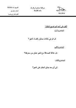 الفرض 3 نموذج 7 - الفلسفة ثانية باك علوم وتقنيات الدورة الأولى