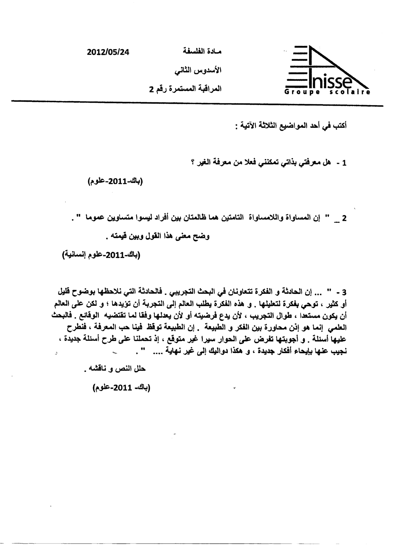الفرض 2 نموذج 6 - الفلسفة ثانية باك علوم وتقنيات الدورة الثانية