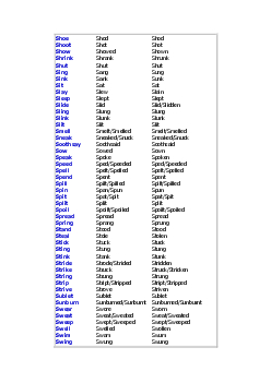 The English Irregular Verb List