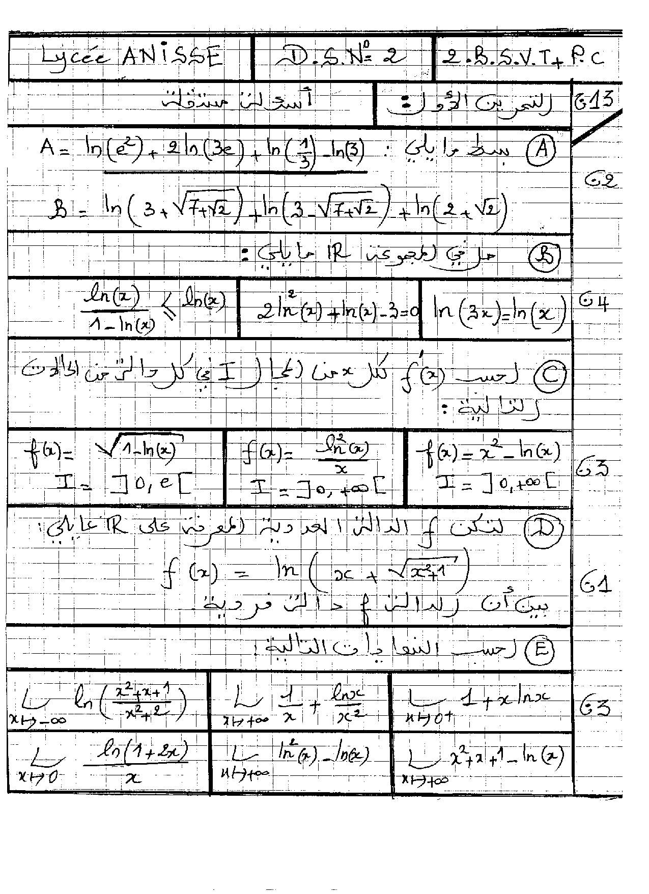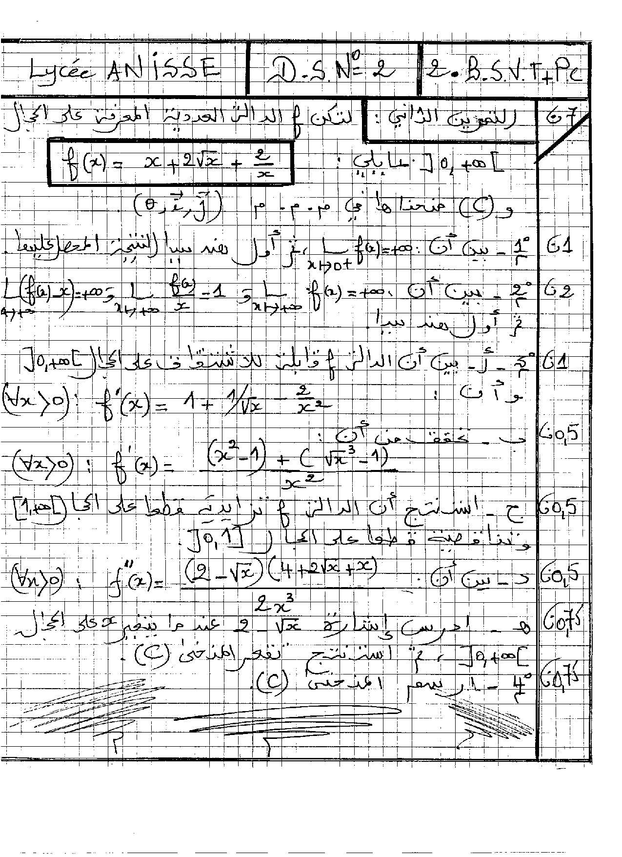 الفرض 2 نموذج 4 - الرياضيات ثانية باك علوم وتقنيات الدورة الأولى