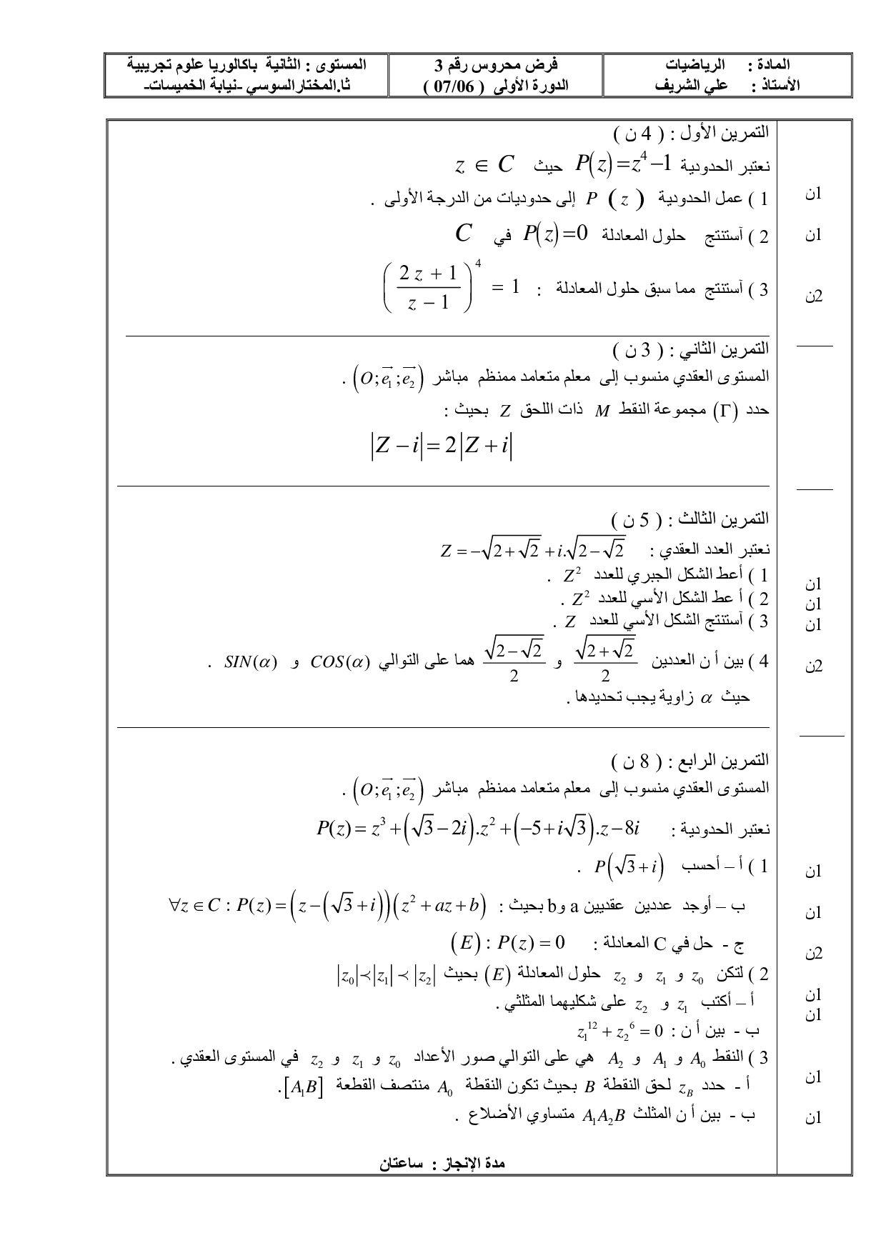 الفرض 3 نموذج 6 - الرياضيات ثانية باك علوم وتقنيات الدورة الأولى