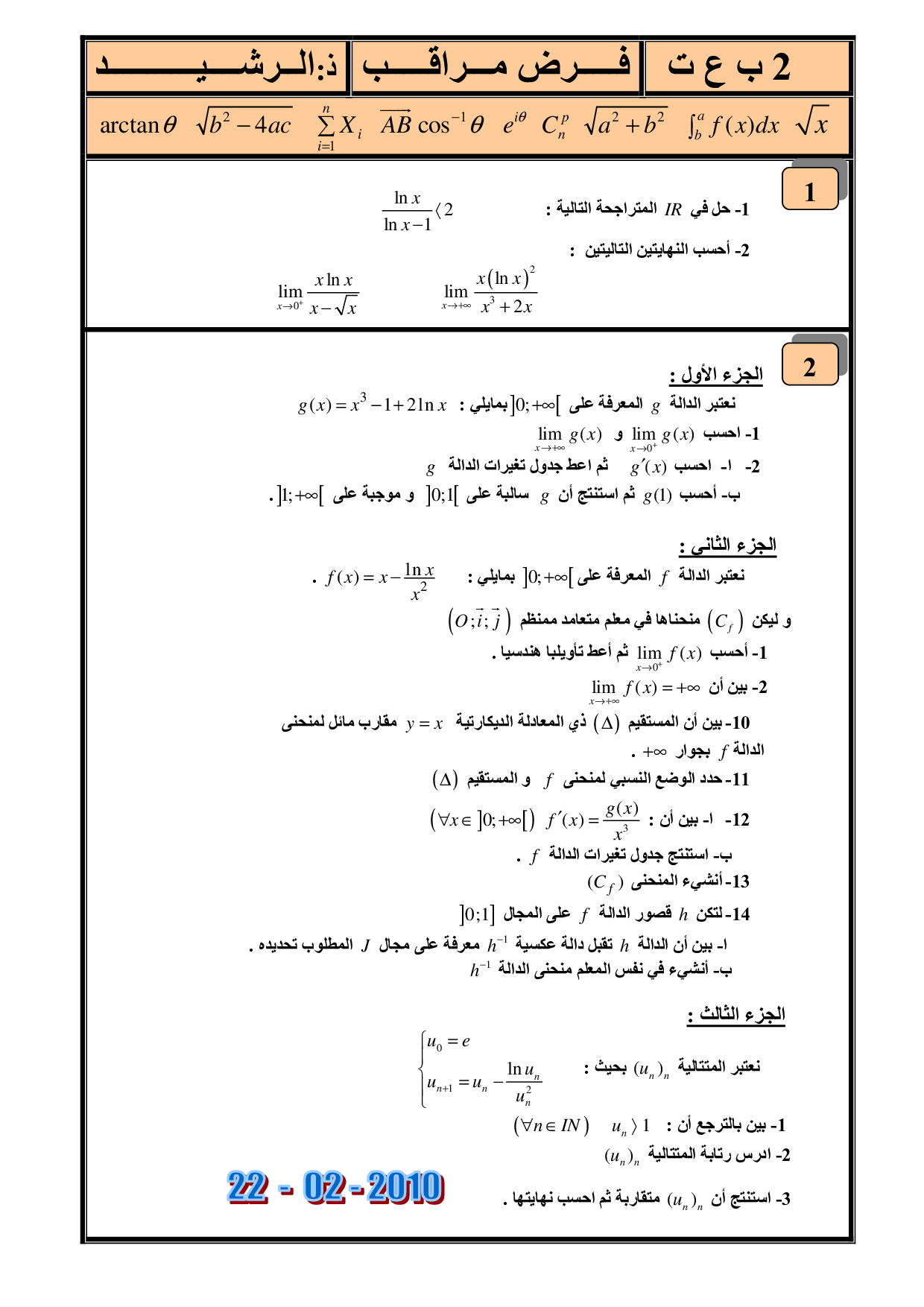 الفرض 1 نموذج 7 - الرياضيات ثانية باك علوم وتقنيات الدورة الثانية