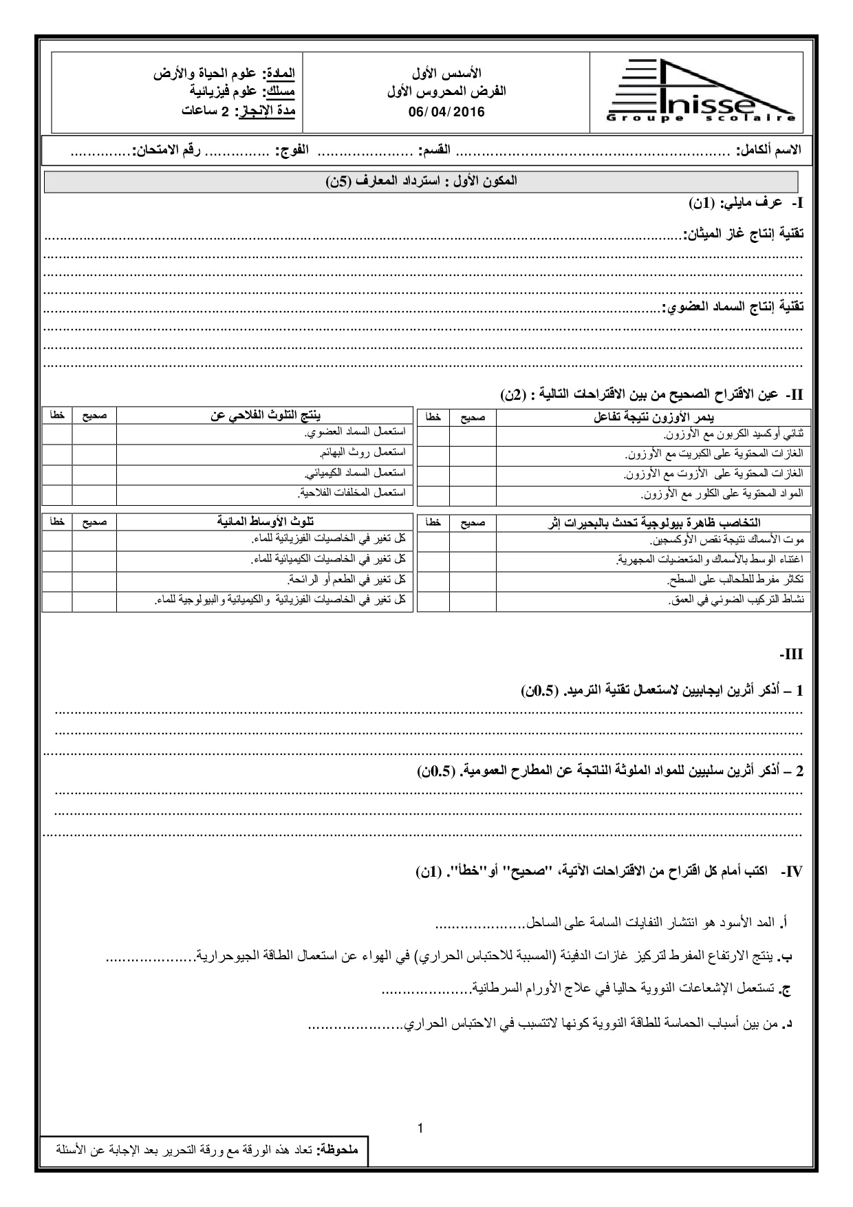 علوم الحياة والارض: الثانية باك علوم فيزيائية