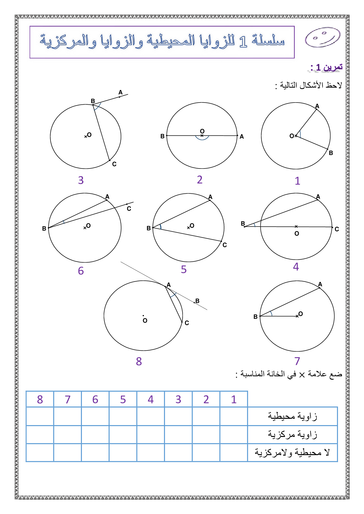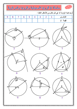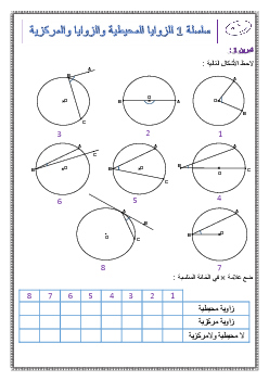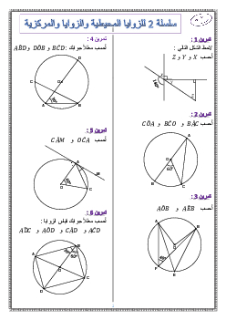 الزوايا المركزية والزوايا المحيطية في دائرة - تمارين محلولة 1