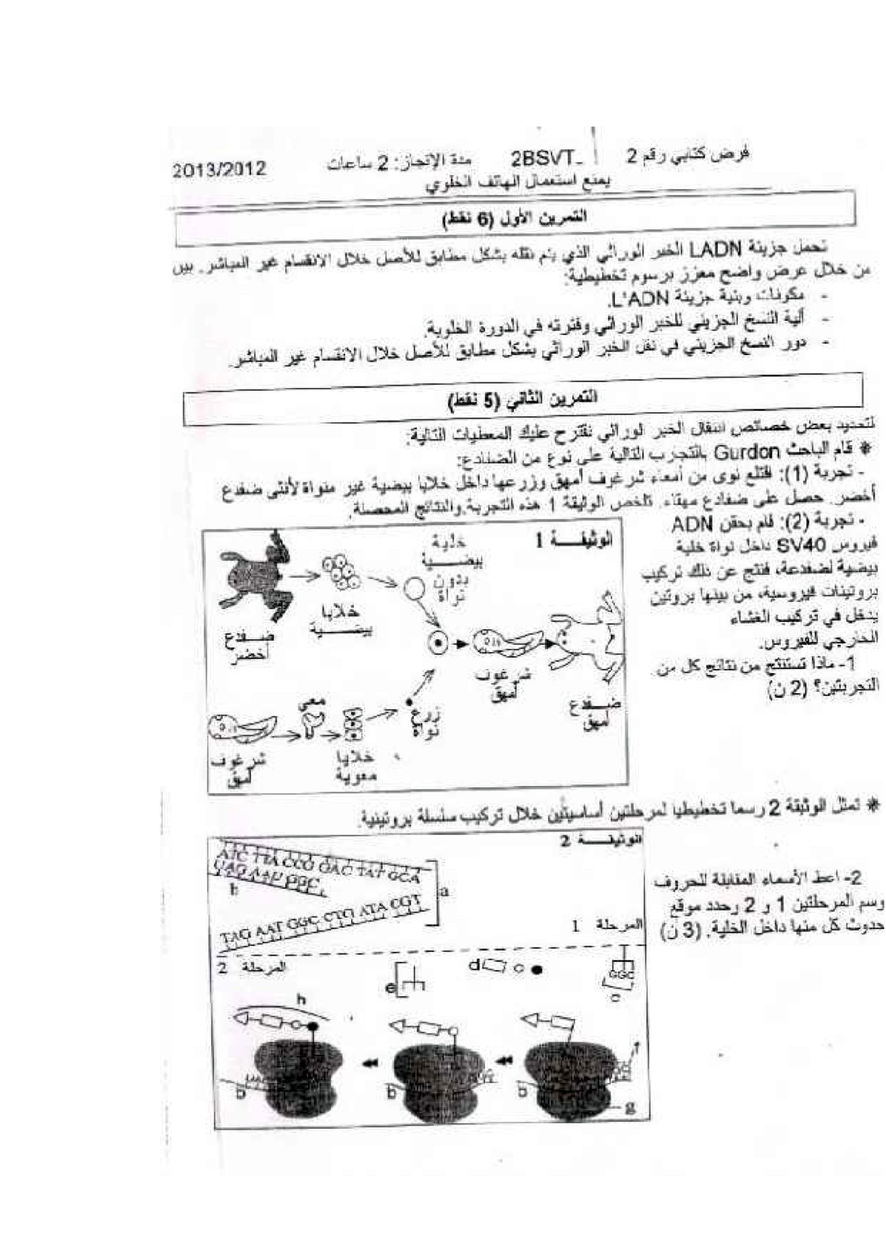الفرض 2 نموذج 2 - علوم الحياة والارض ثانية باك علوم الحياة والأرض الدورة الأولى