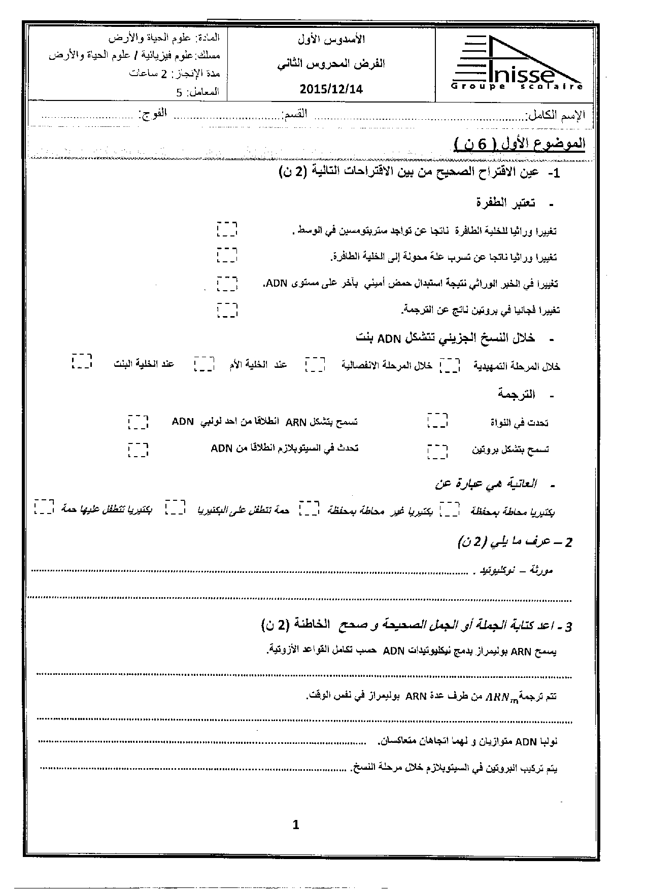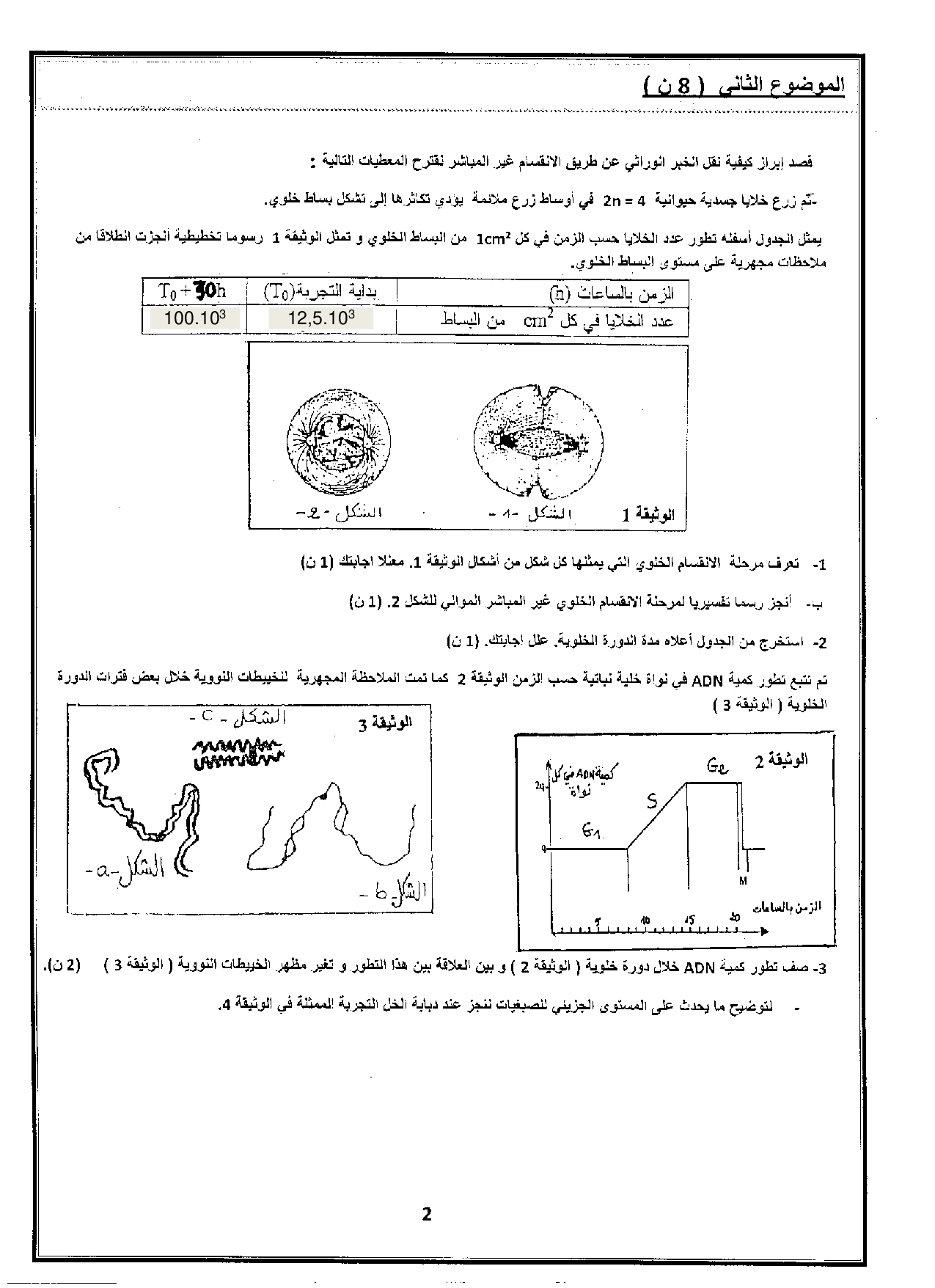 الفرض 2 نموذج 4 - علوم الحياة والارض ثانية باك علوم الحياة والأرض الدورة الأولى