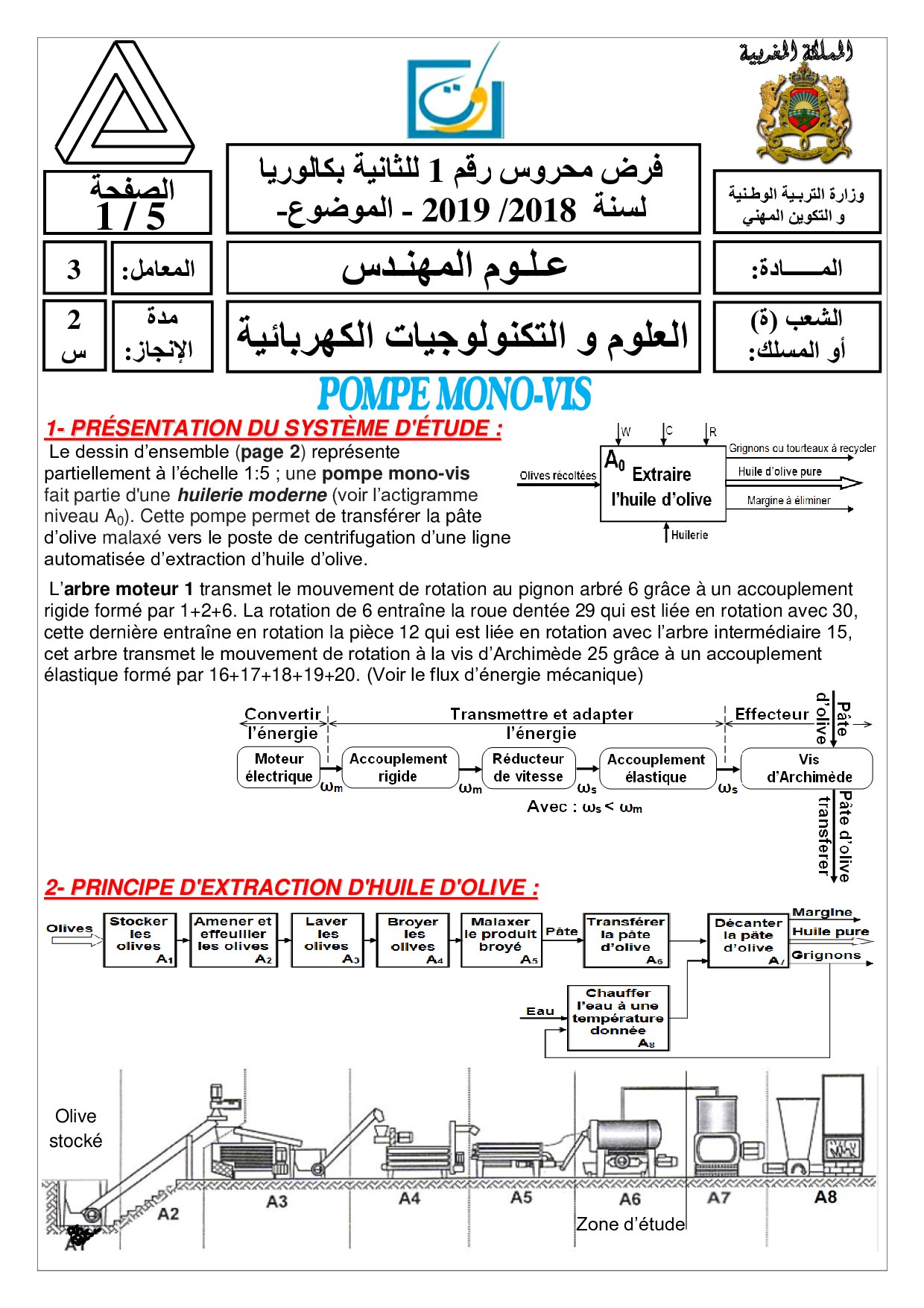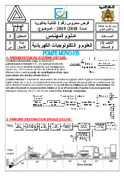 Devoir 1 Modèle 5 - SI 2 Bac STE (Pompe mono-vis)
