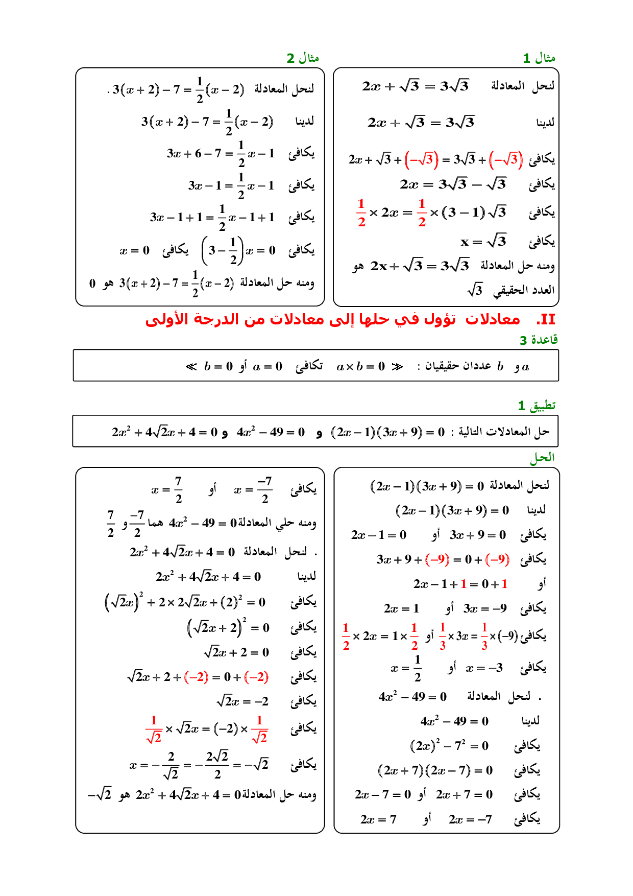 المعادلات والمتراجحات من الدرجة الأولى بمجهول واحد - الدرس 2