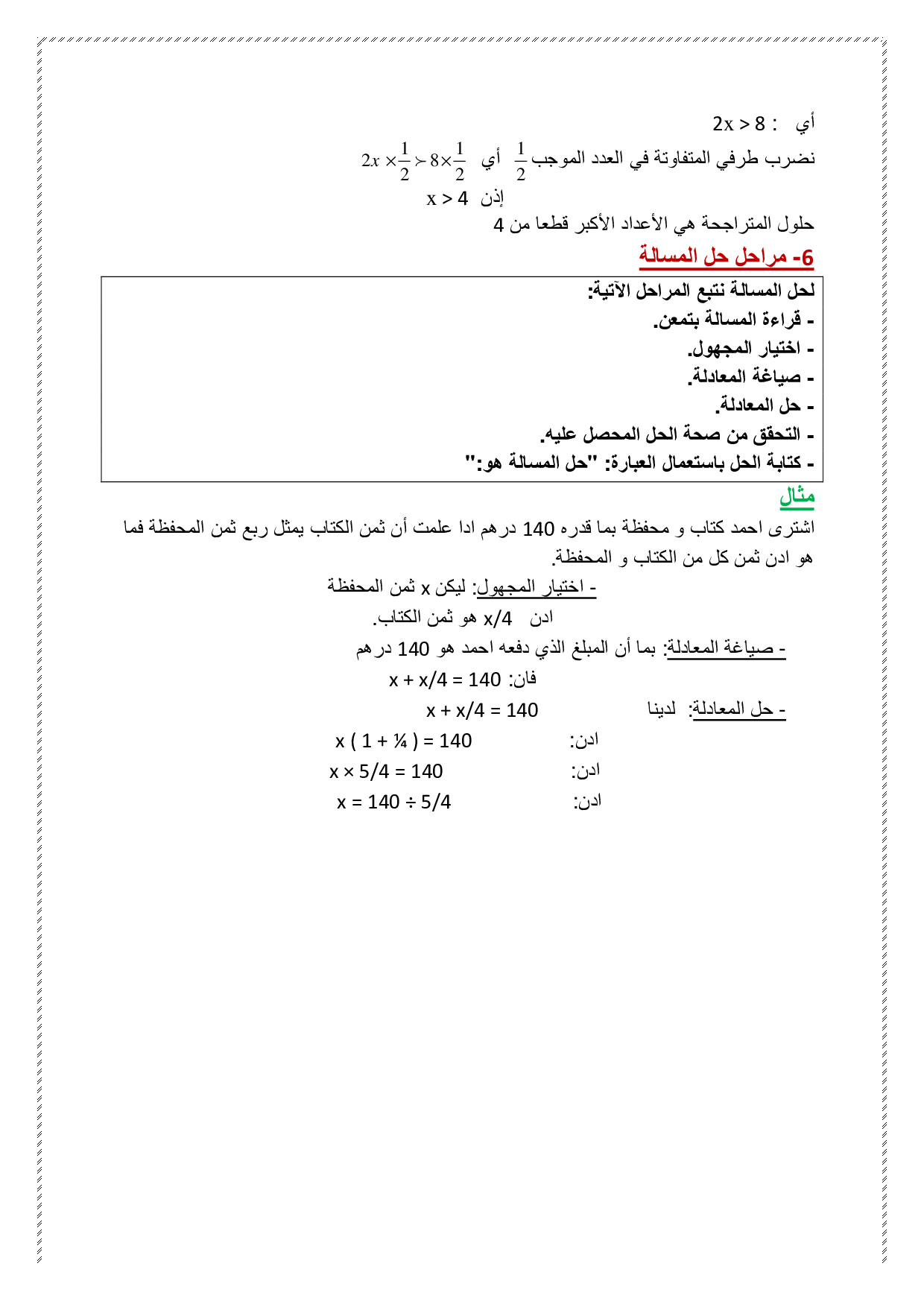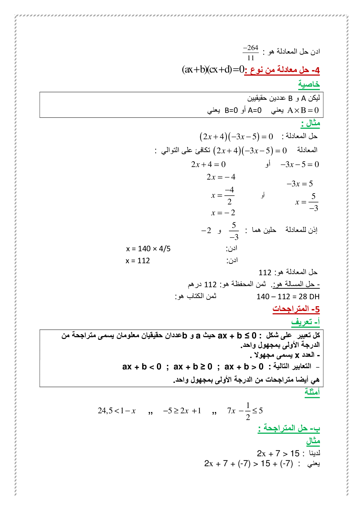 المعادلات والمتراجحات من الدرجة الأولى بمجهول واحد - ملخص الدرس 1