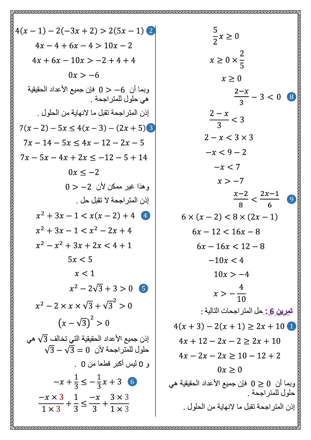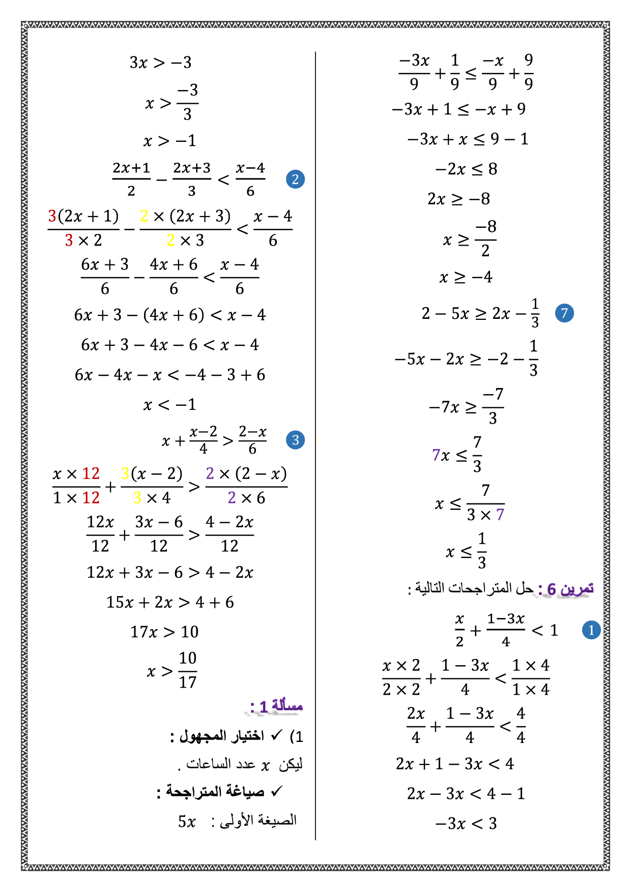 المعادلات والمتراجحات من الدرجة الأولى بمجهول واحد - تمارين محلولة 1