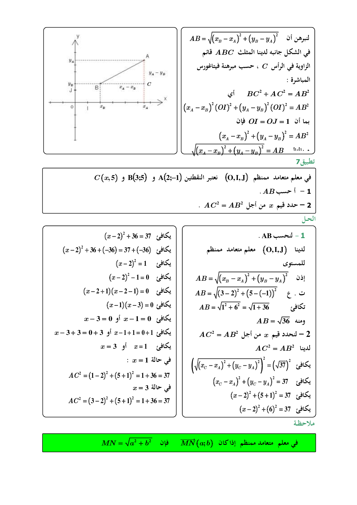 المعلم في المستوى - إحداثيتا نقطة - إحداثيتا متجهة - الدرس 2