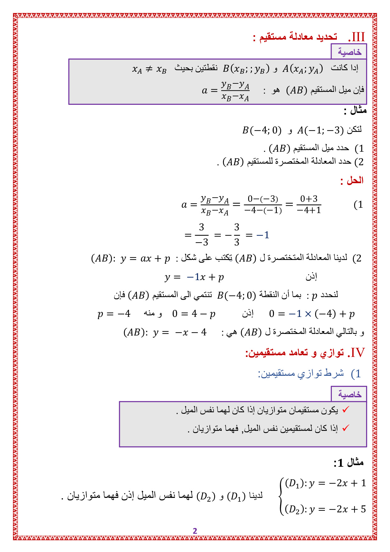 معادلة مستقيم - الدرس 1