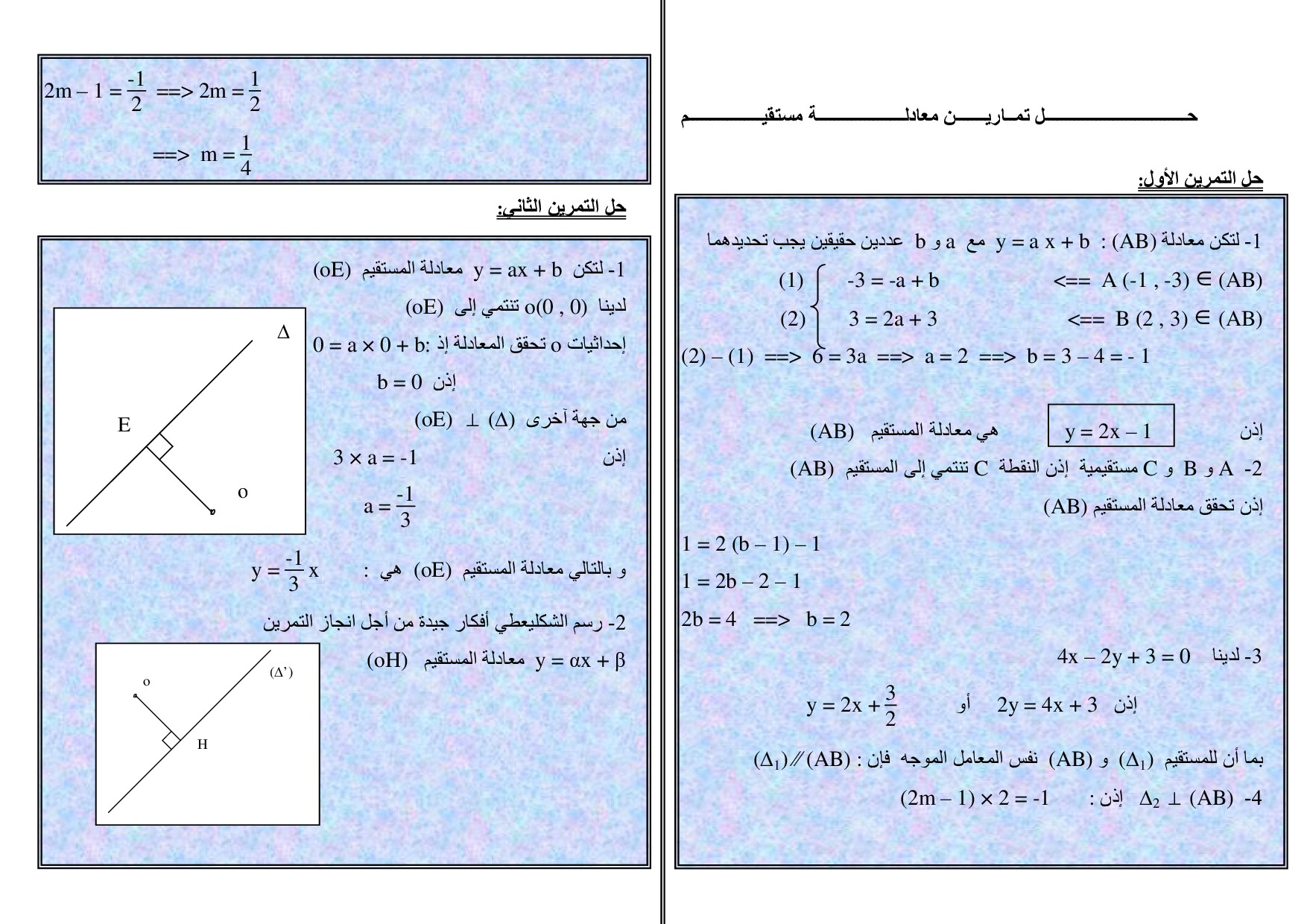 معادلة مستقيم - تصحيح سلسلة التمارين 3