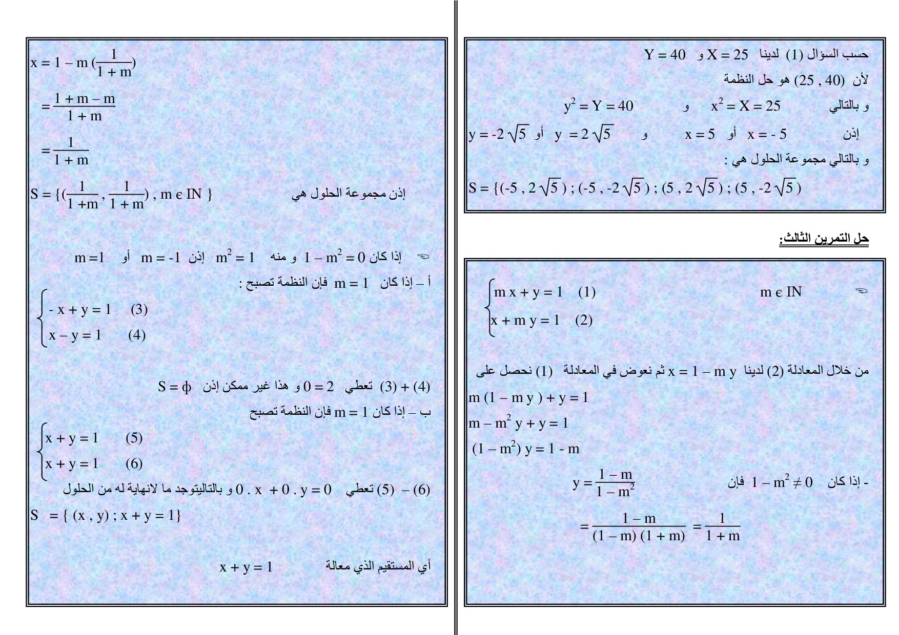 نظمة معادلتين من الدرجة الأولى بمجهولين - تصحيح سلسلة التمارين 3