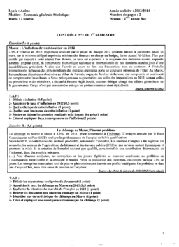 Devoir 2 Modèle 5 - Statistiques 2 Bac Eco Semestre 1